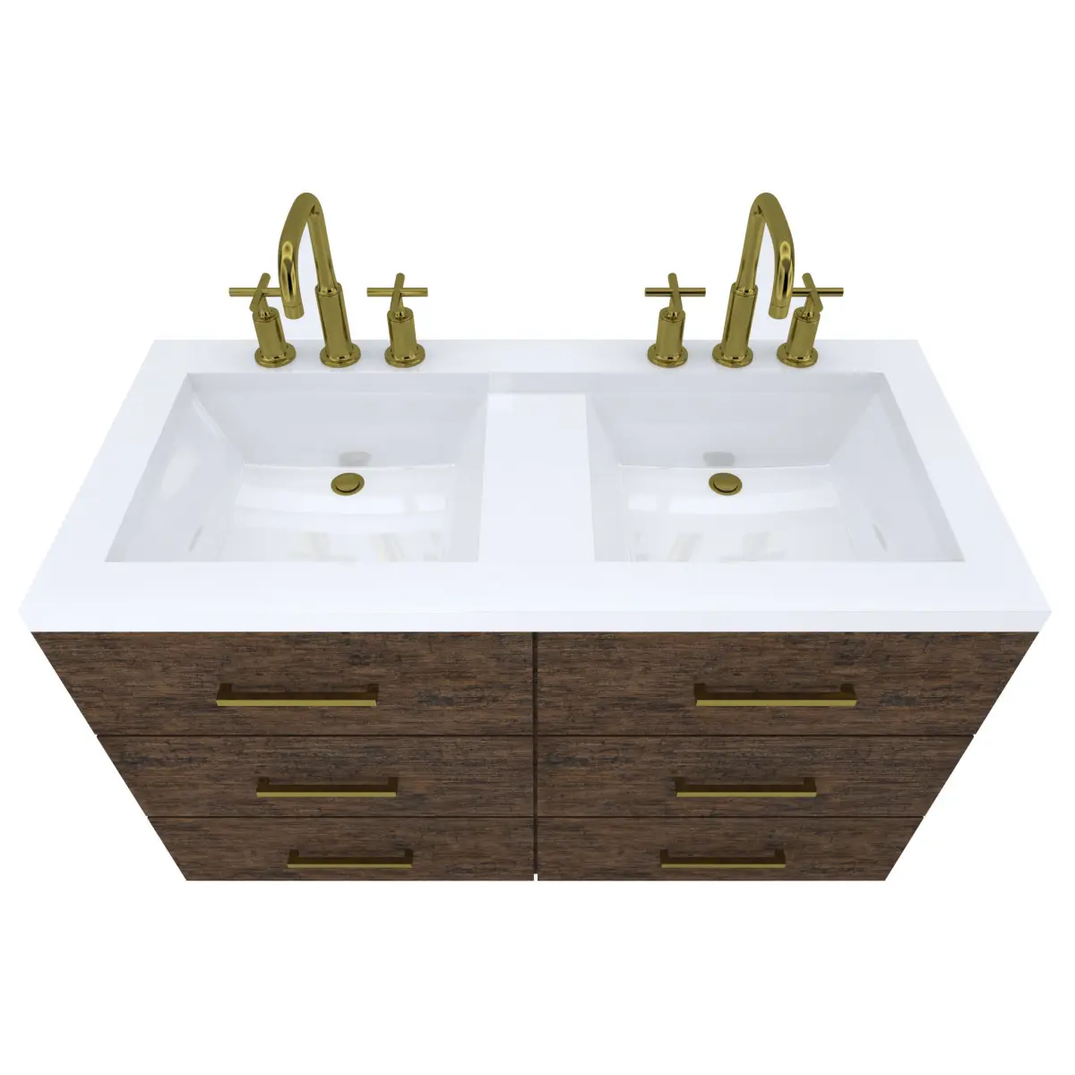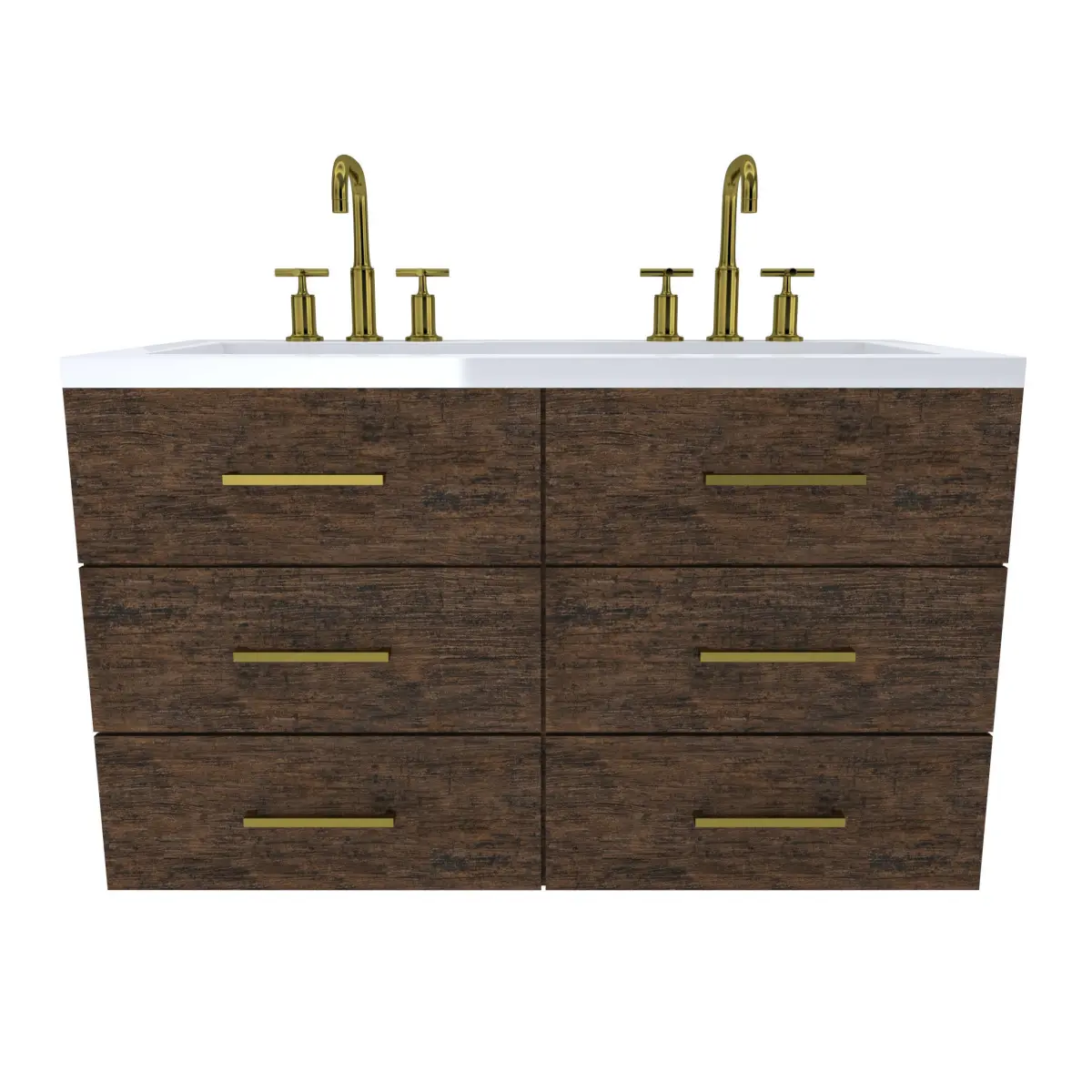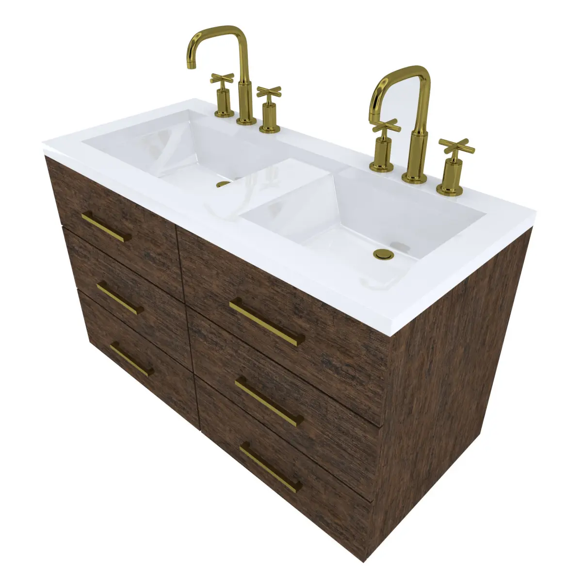 Vanity-006- Floating Wall Mounted Double Vanity Cabinet6 Drawer Vanity Cabinet with wood finish (Exterior Only, Interior of cabinet NOT modeled)