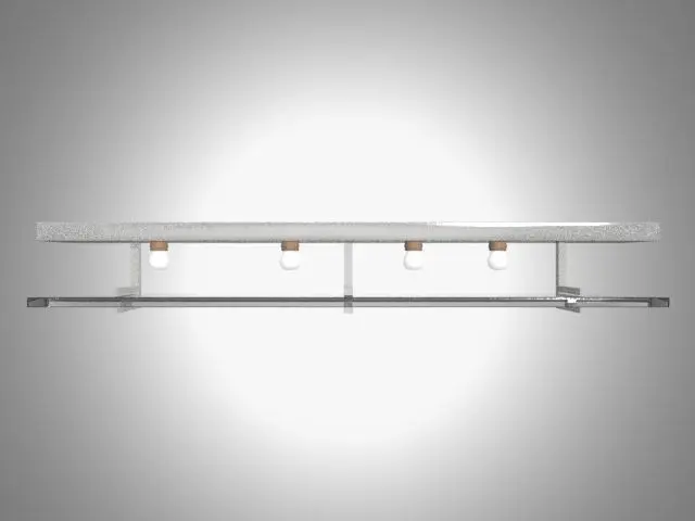 This is a bathroom vanity light. Similar to an Aiden bathroom light fixture. The textures are brushed aluminum, clear glass and frosted glass. The four bulbs are G-9 size and are a glowing architecture material.