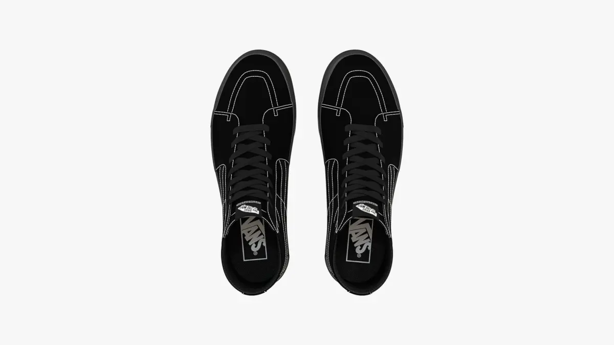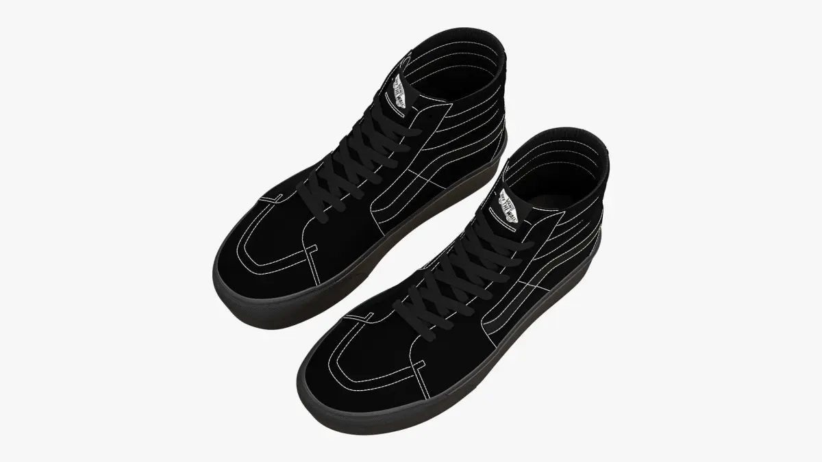 Detailed 3D model of a pair of Vans Sk8-Hi Platform in Monochrome Black, modeled in Cinema 4D and rendered with V-Ray 5. The model was created using approximate real world dimensions.