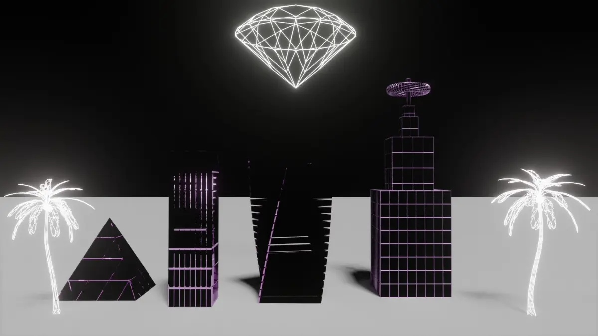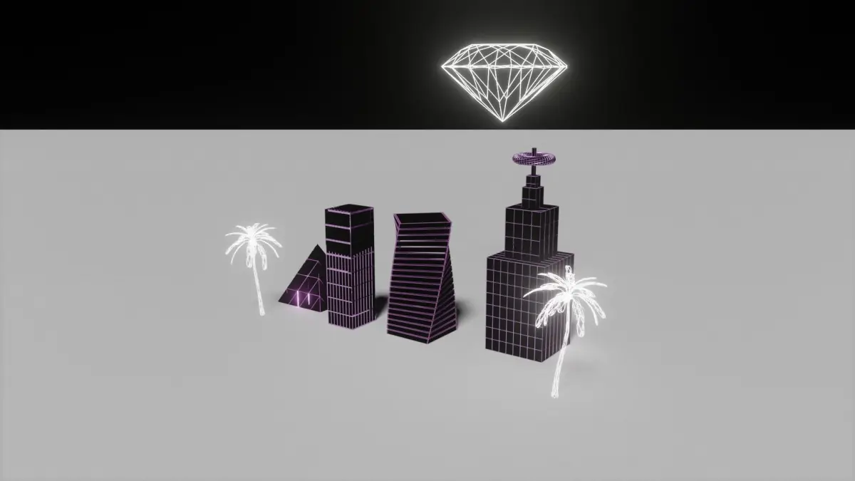 Just some Presets for a vaporwave city (4 buildings, Wireframe palms, Wireframe Diamond)