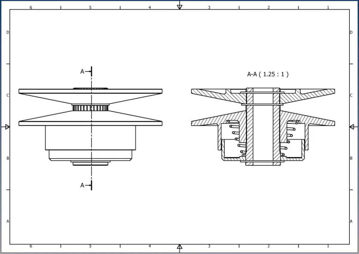 Speed variation is acomplished by increasing/decreasing the pulley’s channel. The return movement of the side flange is caused by the spring.