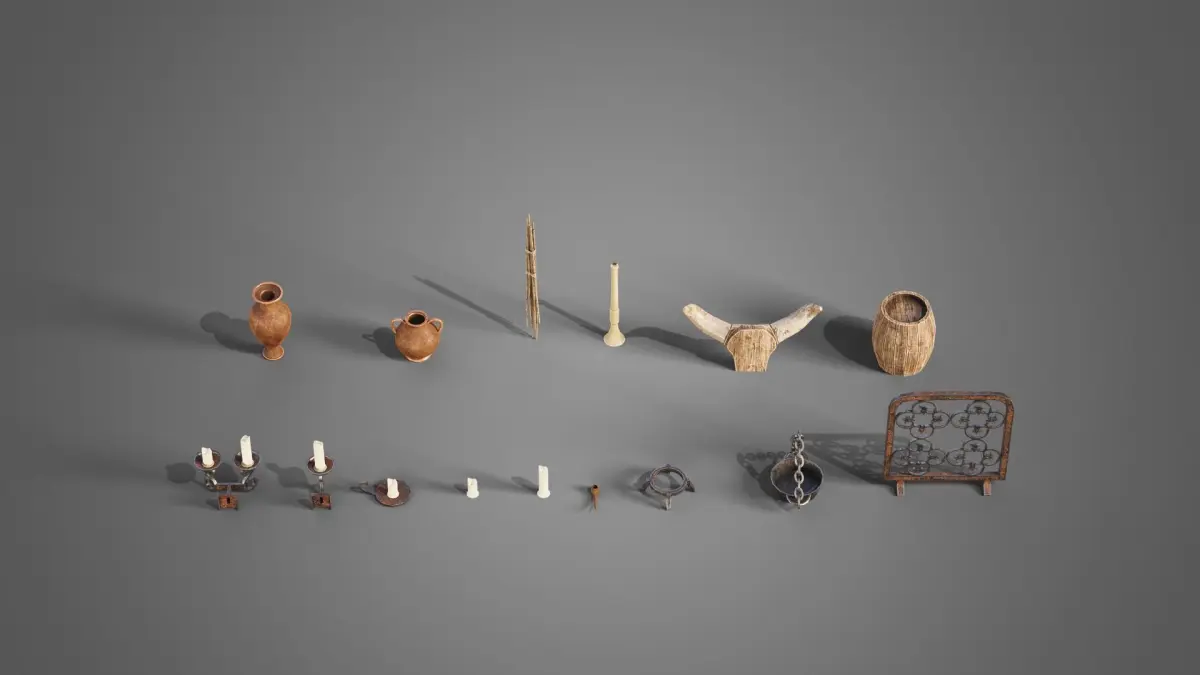 Medieval props, modeled in Blender, textured with Substance Painter.