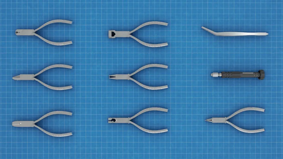 Various tools, package includes: pliers, screwdriver, tweezers.