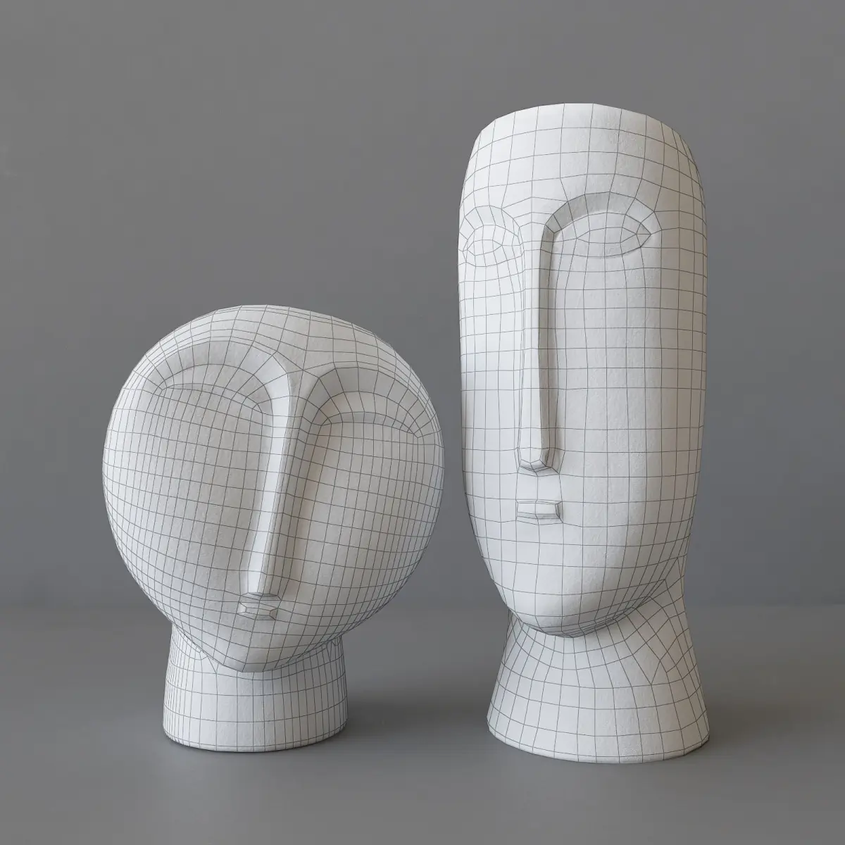 HomeCatalogVase-03 two ceramic head sculptures Low-poly 3D model