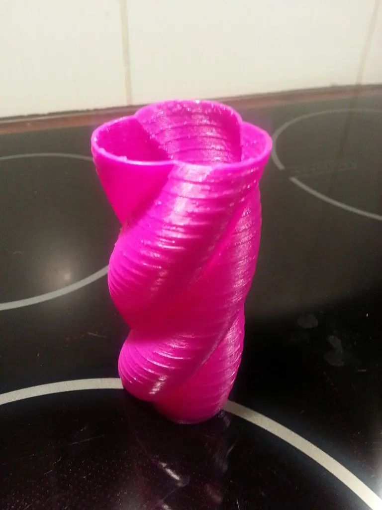 Well, just learned something new, and desided to draw a vase with that skill :) Printed with white PLA and purple ABS (yeah, I noticed the poor quality of the prints - disassembling at the moment:)) www.3dcr.fi