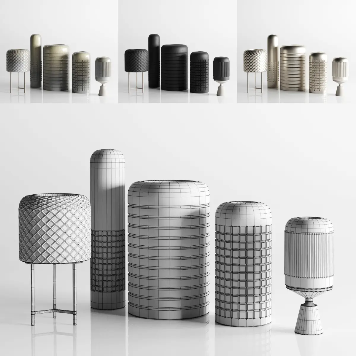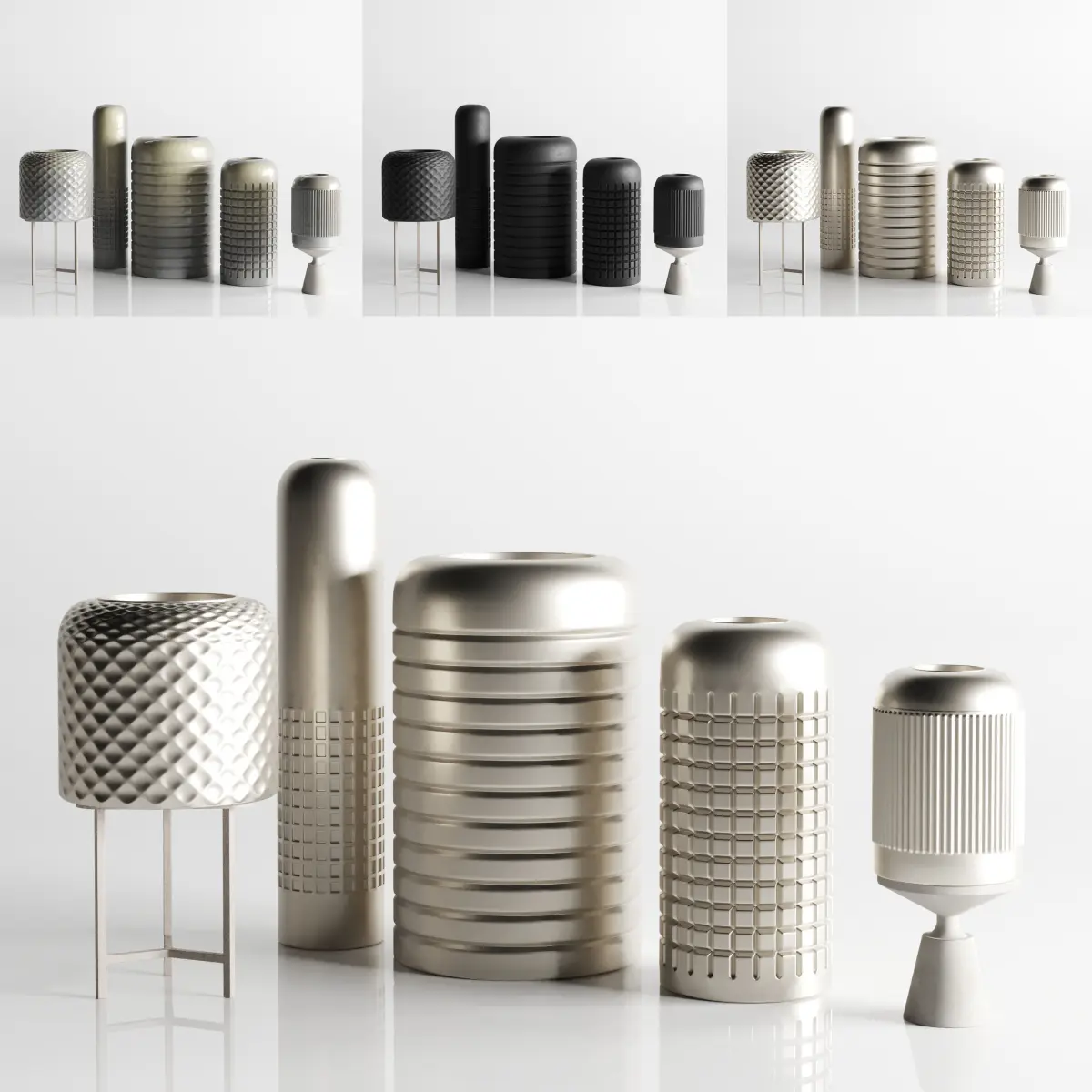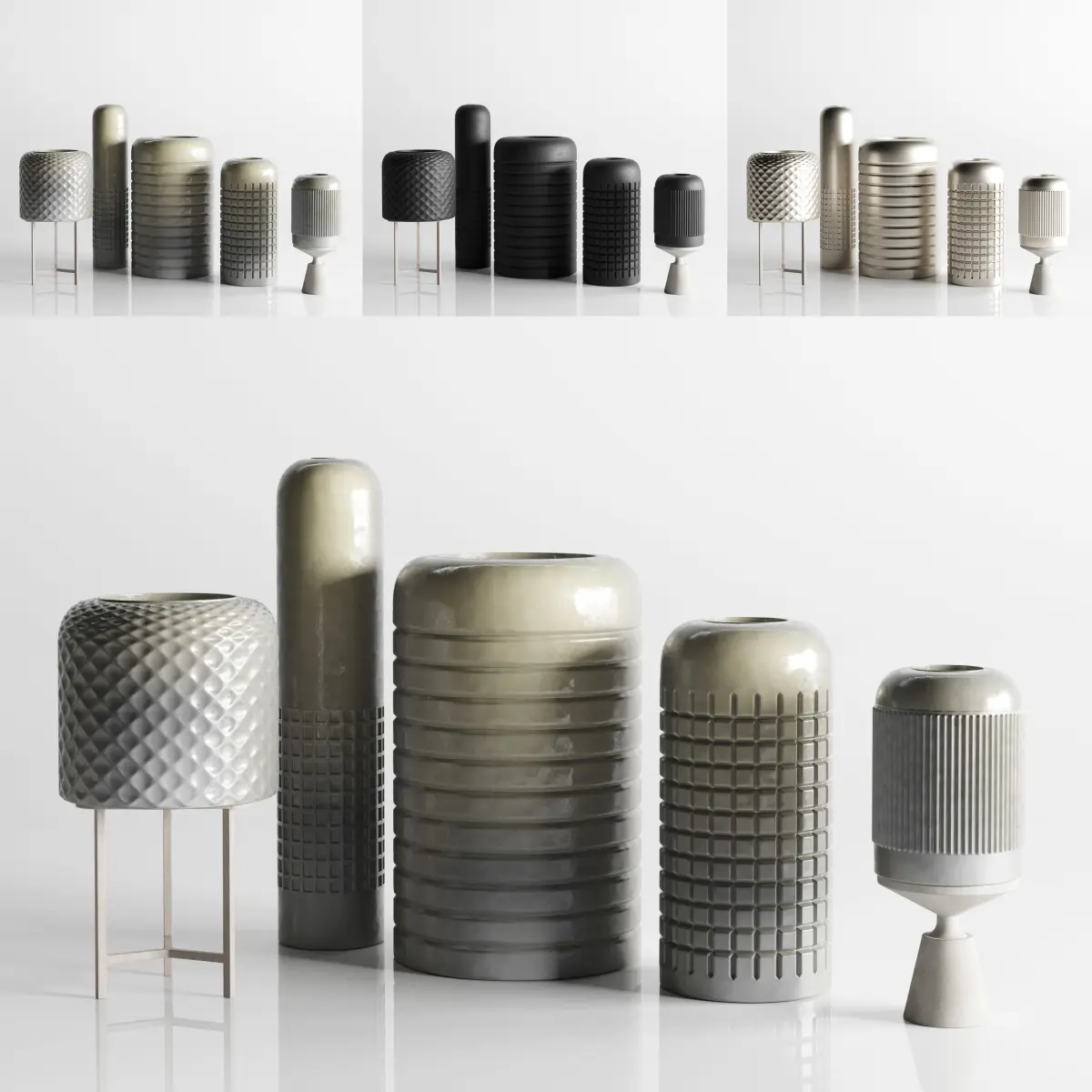 Vase Concrete metal ceramic Indoor Outdoor Set 04 3D model