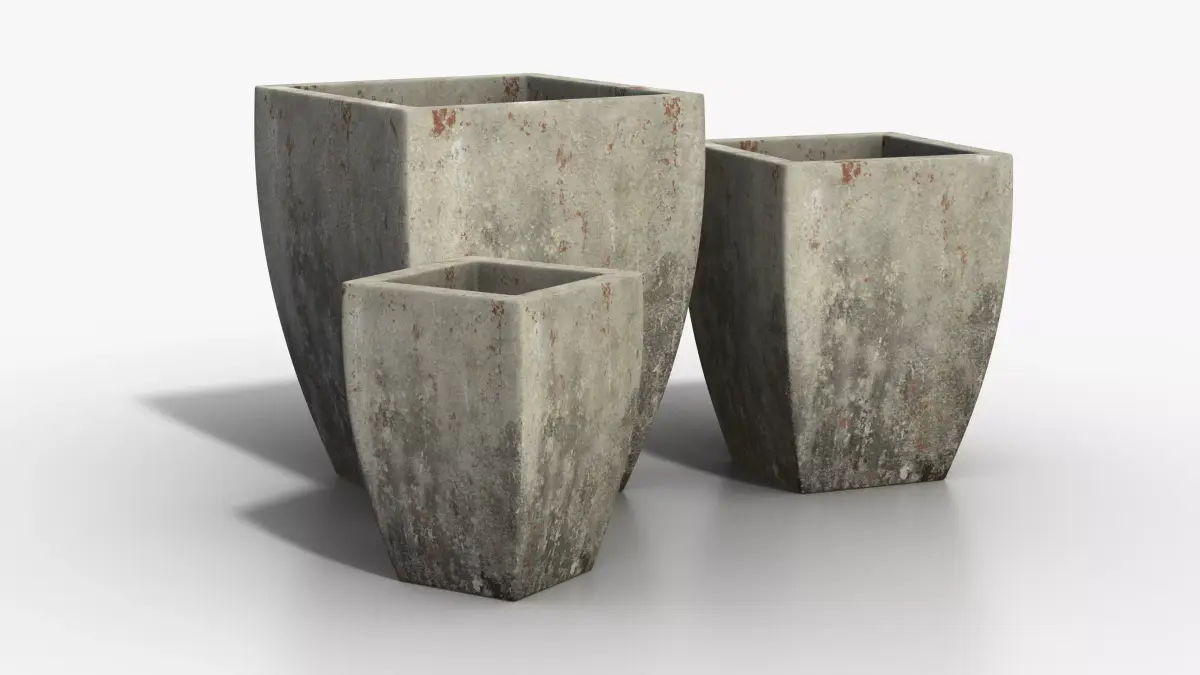 Vase Concrete Quad Set is a high quality, photo real model that will enhance detail and realism to any of your rendering projects.The model has a fully textured, detailed design that allows for close-up renders.