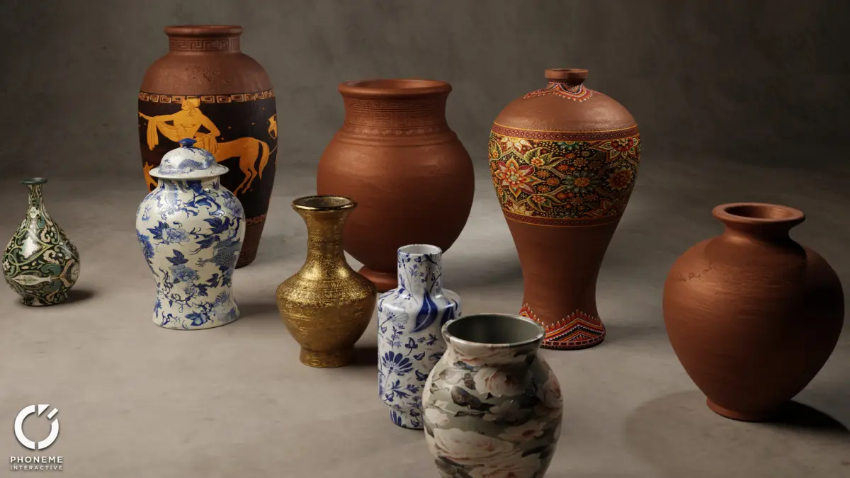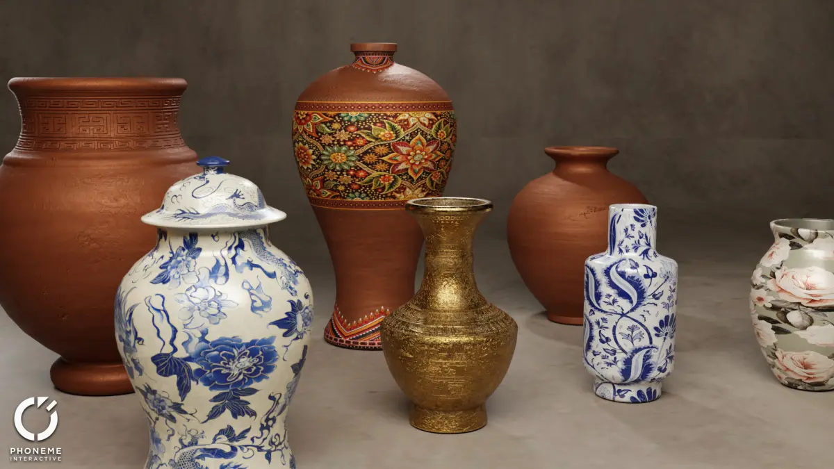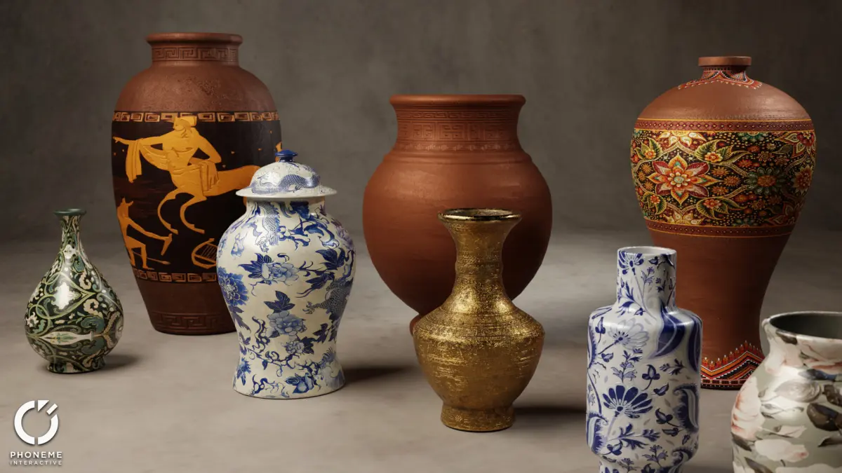 Vase Pack – 11 Antique and Decorative Game Ready PropsEnhance your historical and interior scenes with this detailed Vase Pack, featuring 11 high-quality meshes inspired by ancient civilizations and classic design styles. This collection includes handcrafted models influenced by Greek, Ottoman, Asian, and Middle Eastern ceramic art.