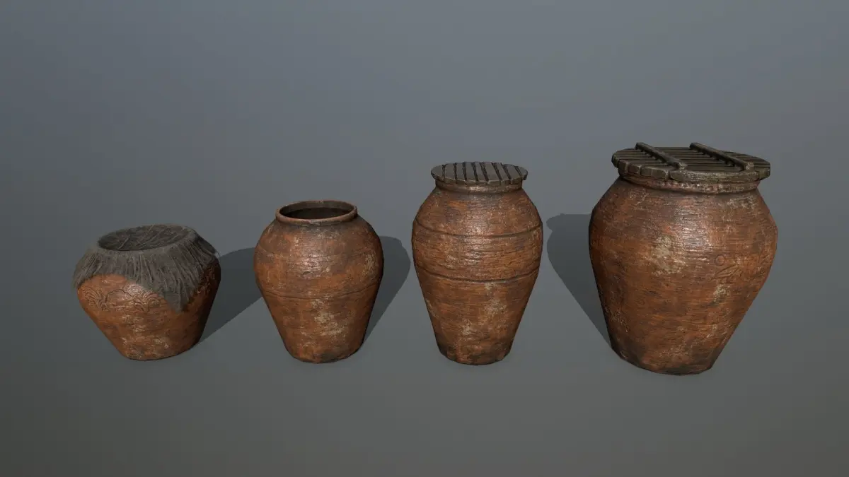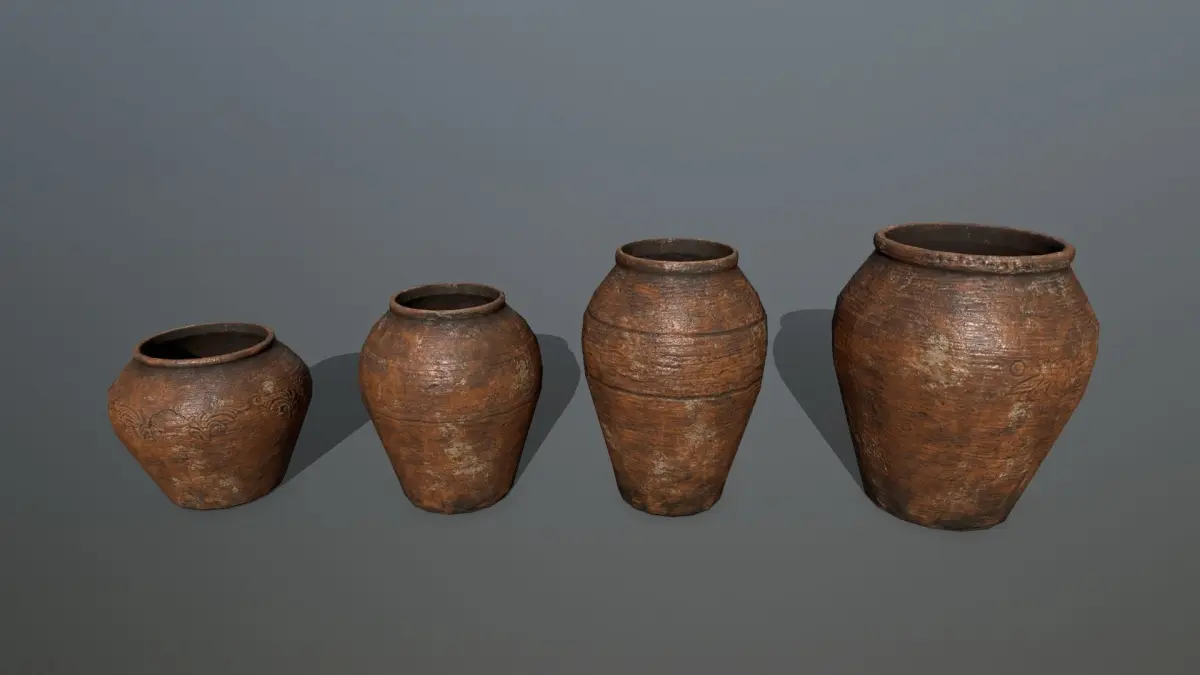 vase set clay pot Low-poly 3D model