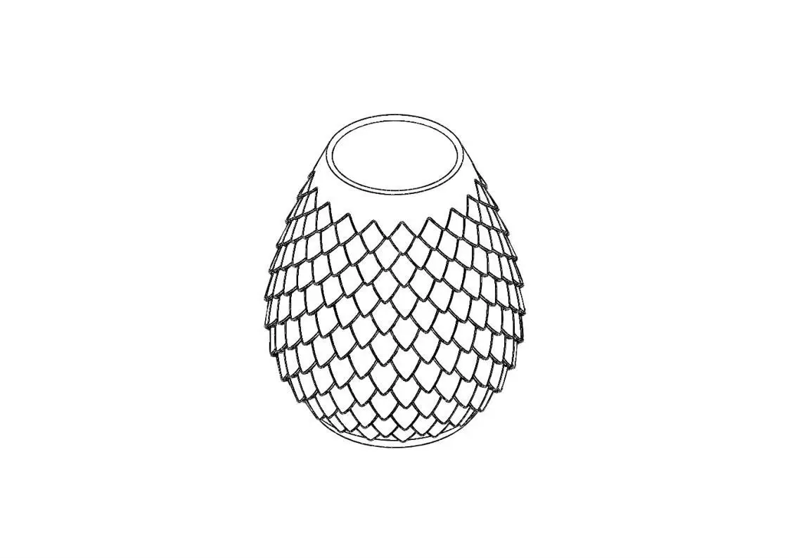 A vase with a dragon scale pattern was created in SolidWorks and exported as an STL file to 3D printable.Without textures and materials, rendering in Blender Cycles.Original size: max diameter 100 mm, height - 71 mm.You can scale for the required dimensions yourself.