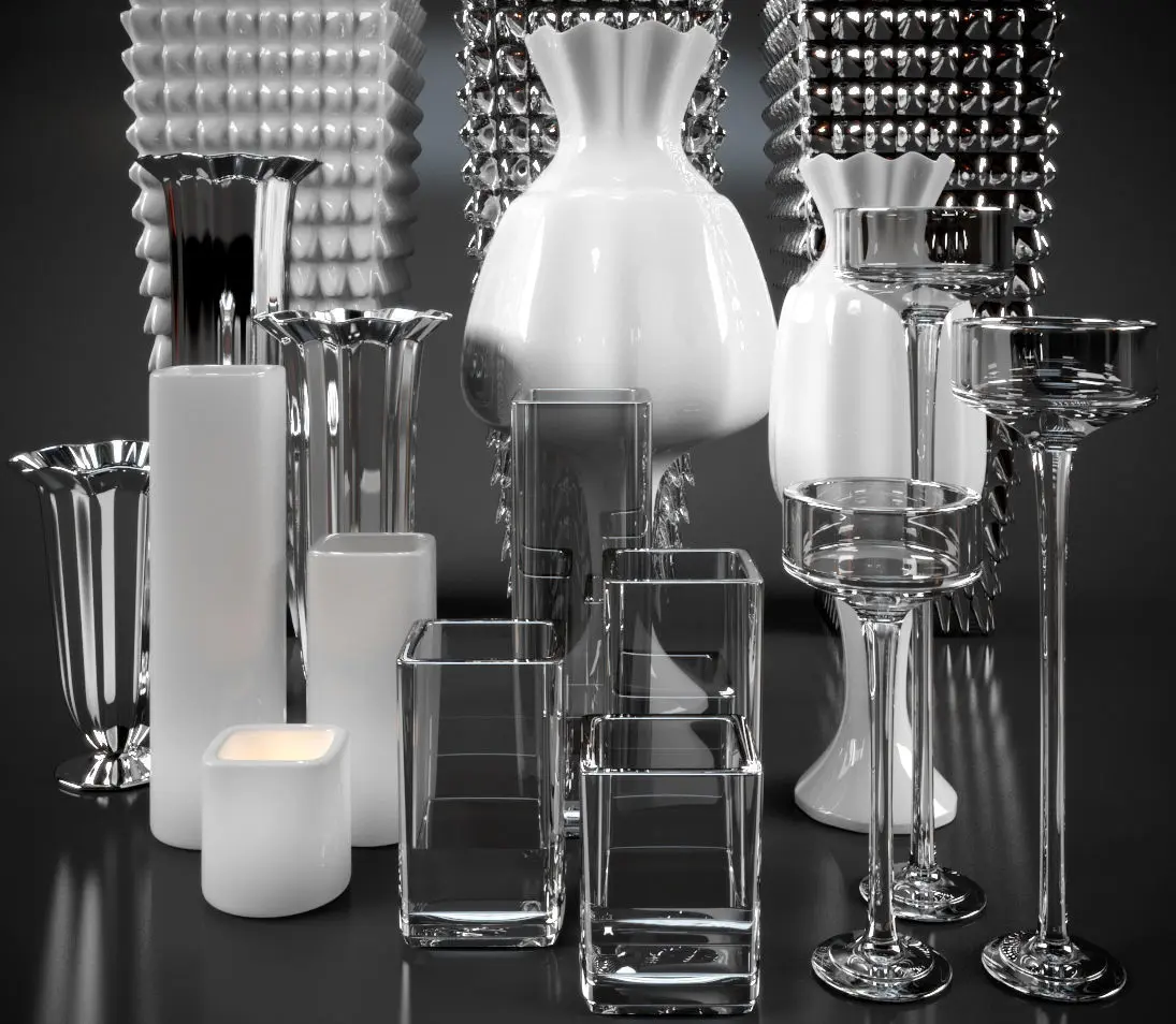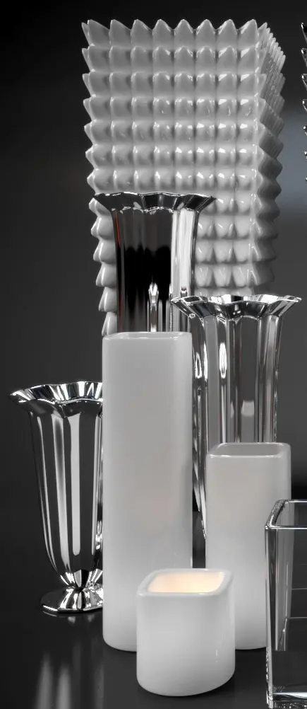 decorative vases and lamps of different shapes and materials as per your requirement suits for your interior..only one texture for other no extra textures needed.. used v ray basic material itself designed in 3dsmax