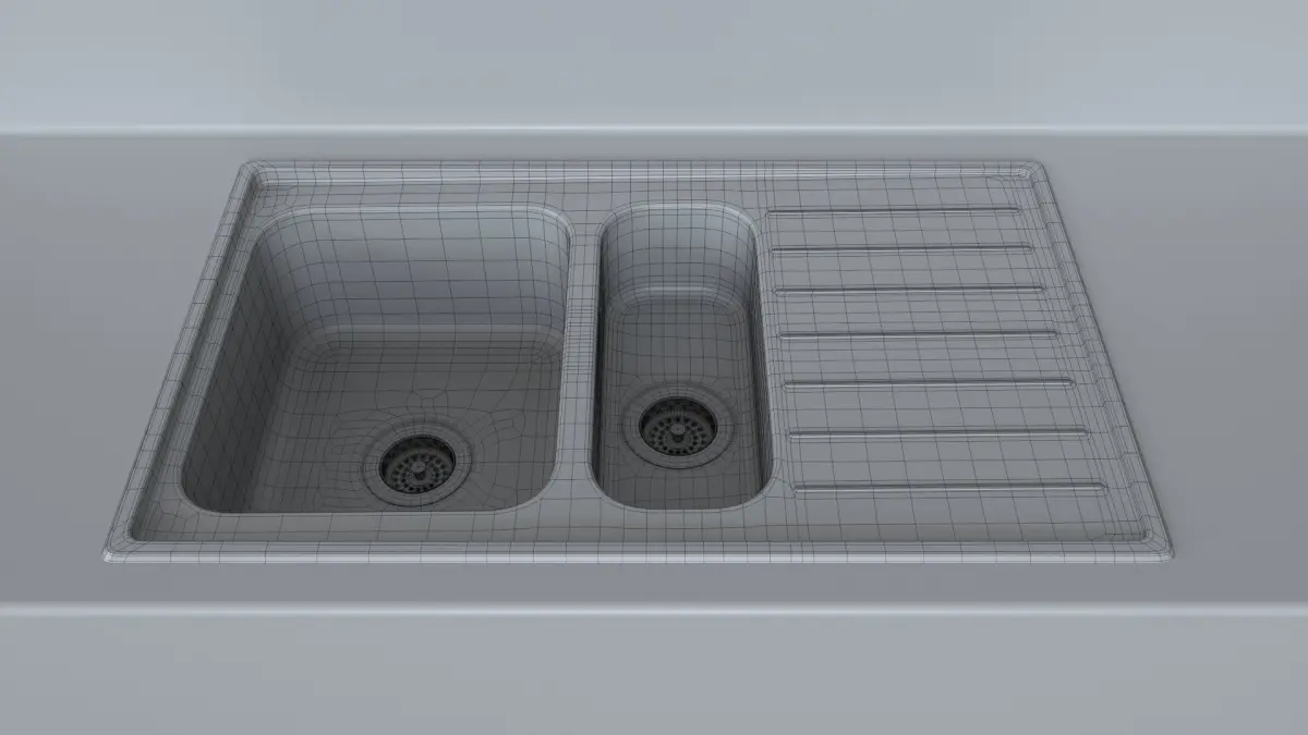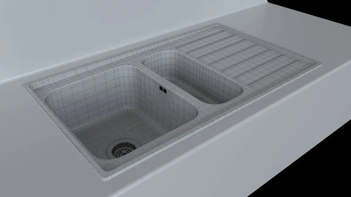 Detailed subdivision model of an ikea VATTUDALEN sink with a LILLVIKENsink stopper for architectural visualization.