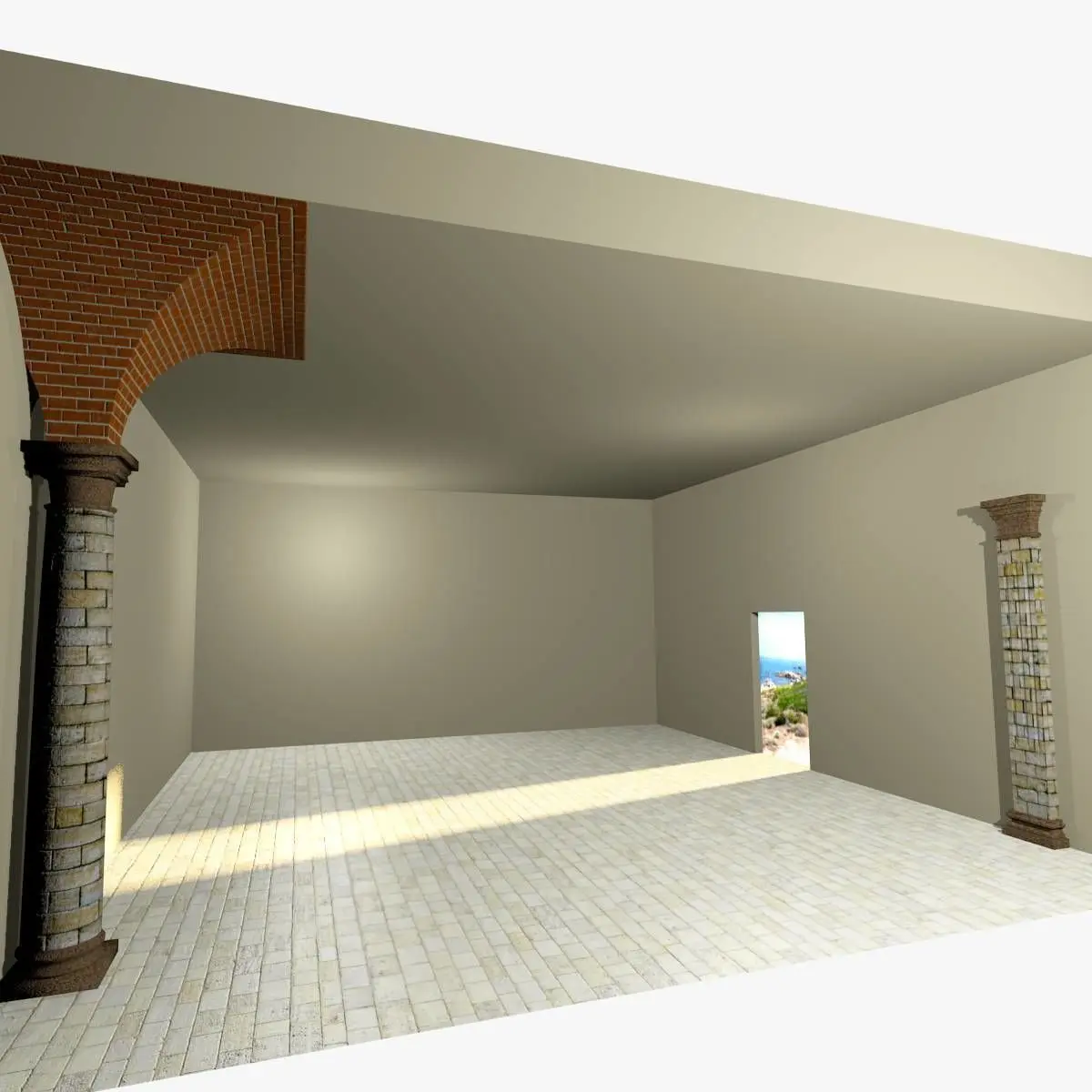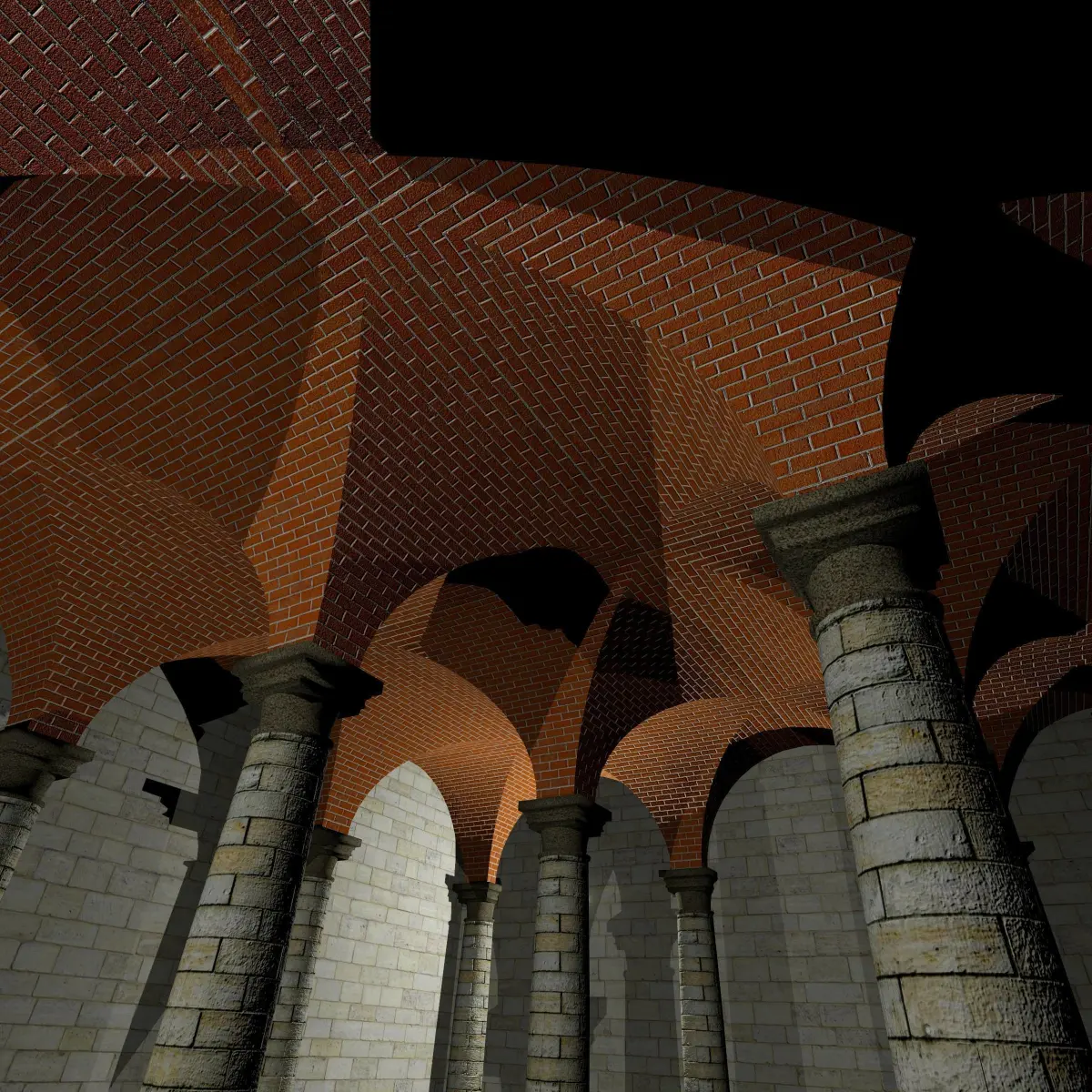 It is part of a Collection based on 5.0m and 7.5m modules (see Vaults Collection on this Site).We propose two different column spacings to avoid or reduce texture distorsion when an image showing squared elements (bricks or stones) is used; nevertheless every scaling operation is feasible to adapt vaults to every need.