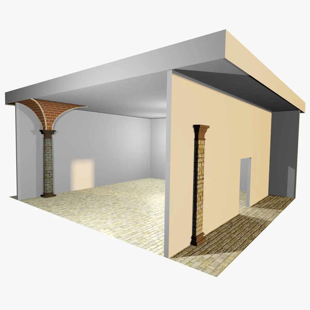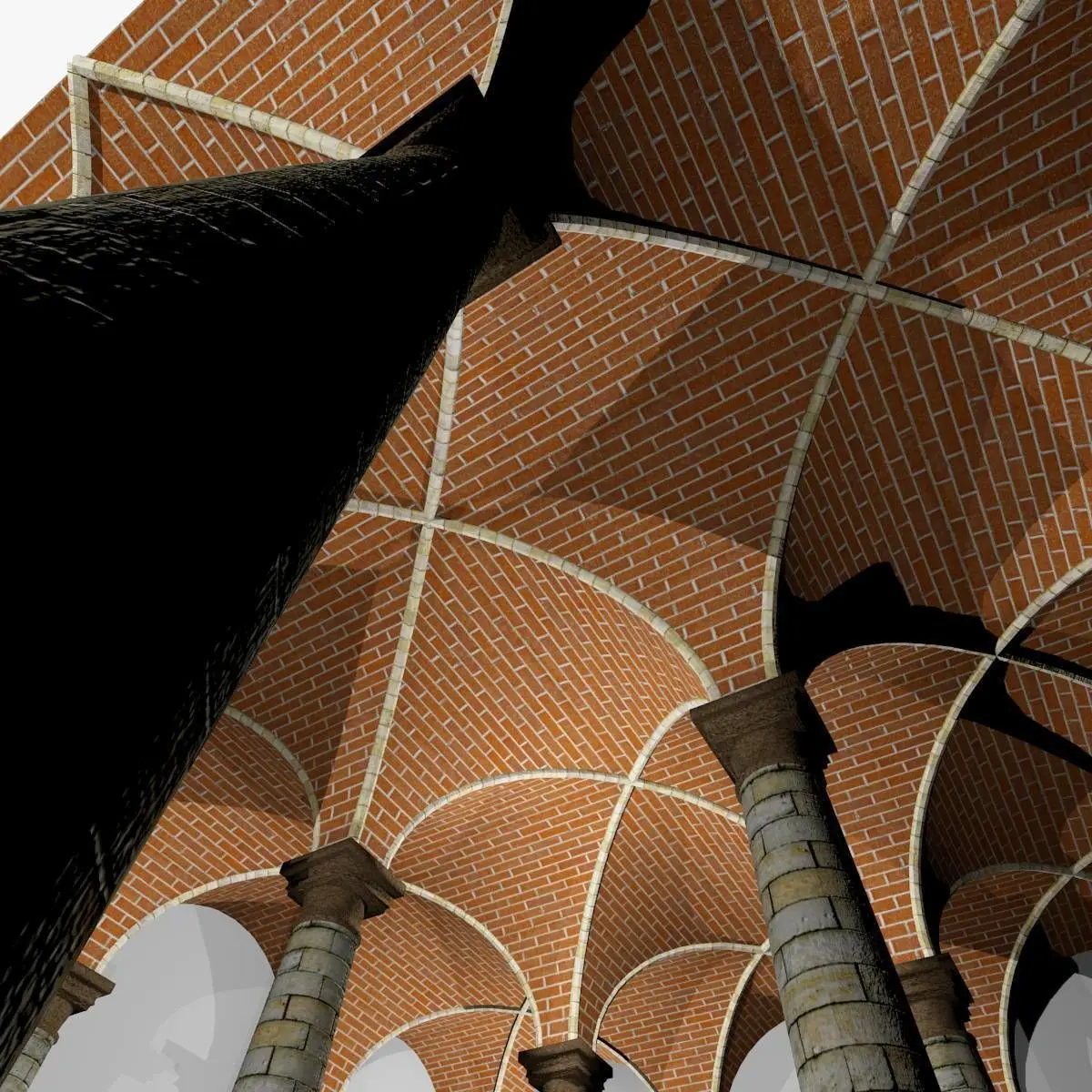 It is part of a Collection based on 5.0m and 7.5m modules (see Vaults Collection on this Site).We propose two different column spacings to avoid or reduce texture distorsion when an image showing squared elements (bricks or stones) is used; nevertheless every scaling operation is feasible to adapt vaults to every need.