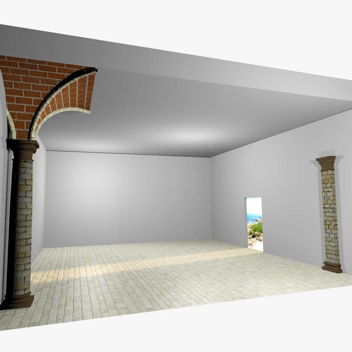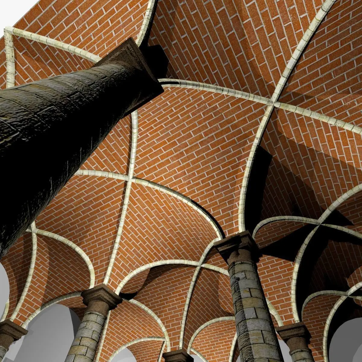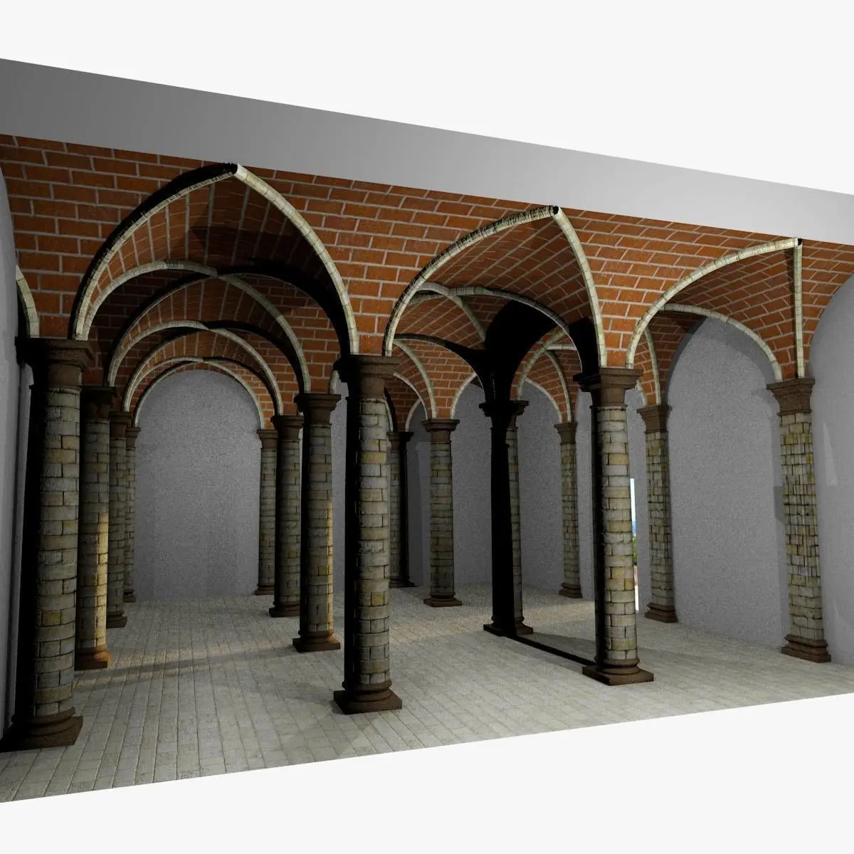 It is part of a Collection based on 5.0m and 7.5m modules (see Vaults Collection on this Site).We propose two different column spacings to avoid or reduce texture distorsion when an image showing squared elements (bricks or stones) is used; nevertheless every scaling operation is feasible to adapt vaults to every need.