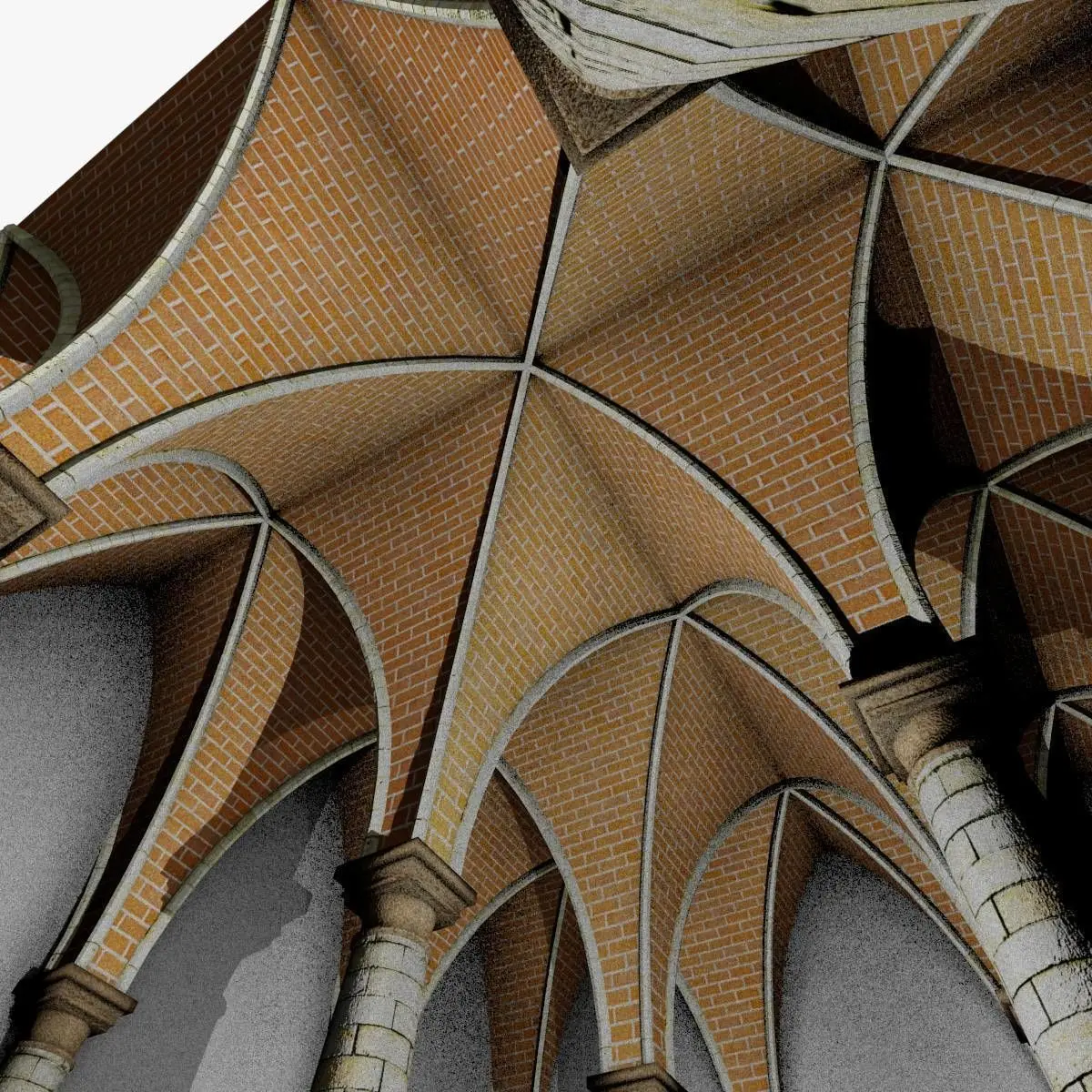 Vaulting 5-1 Gothic 500cm spaced with thick curbs Low-poly 3D model
