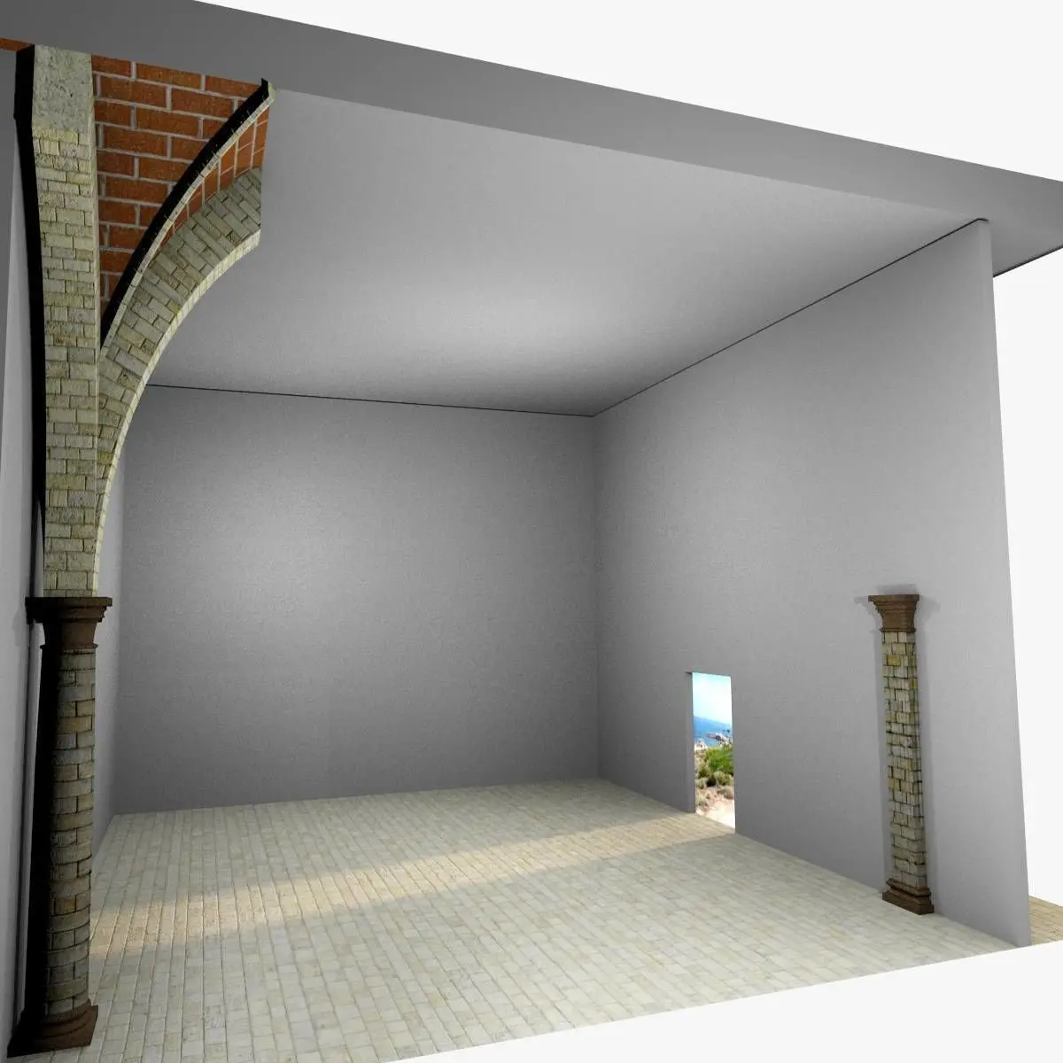 It is part of a Collection based on 5.0m and 7.5m modules (see Vaults Collection on this Site).We propose two different column spacings to avoid or reduce texture distorsion when an image showing squared elements (bricks or stones) is used; nevertheless every scaling operation is feasible to adapt vaults to every need.