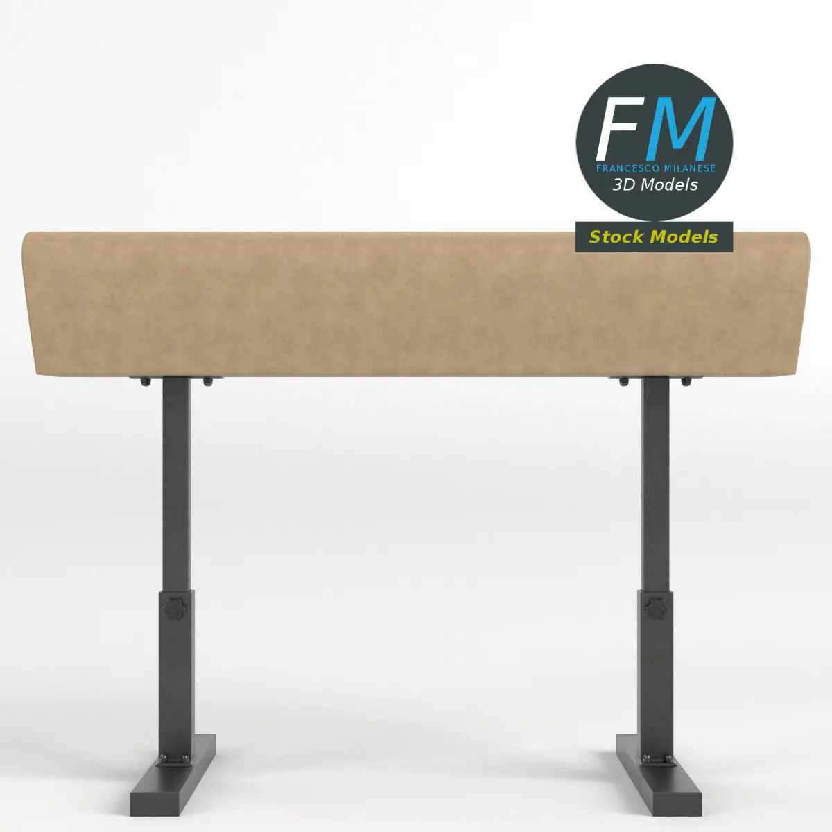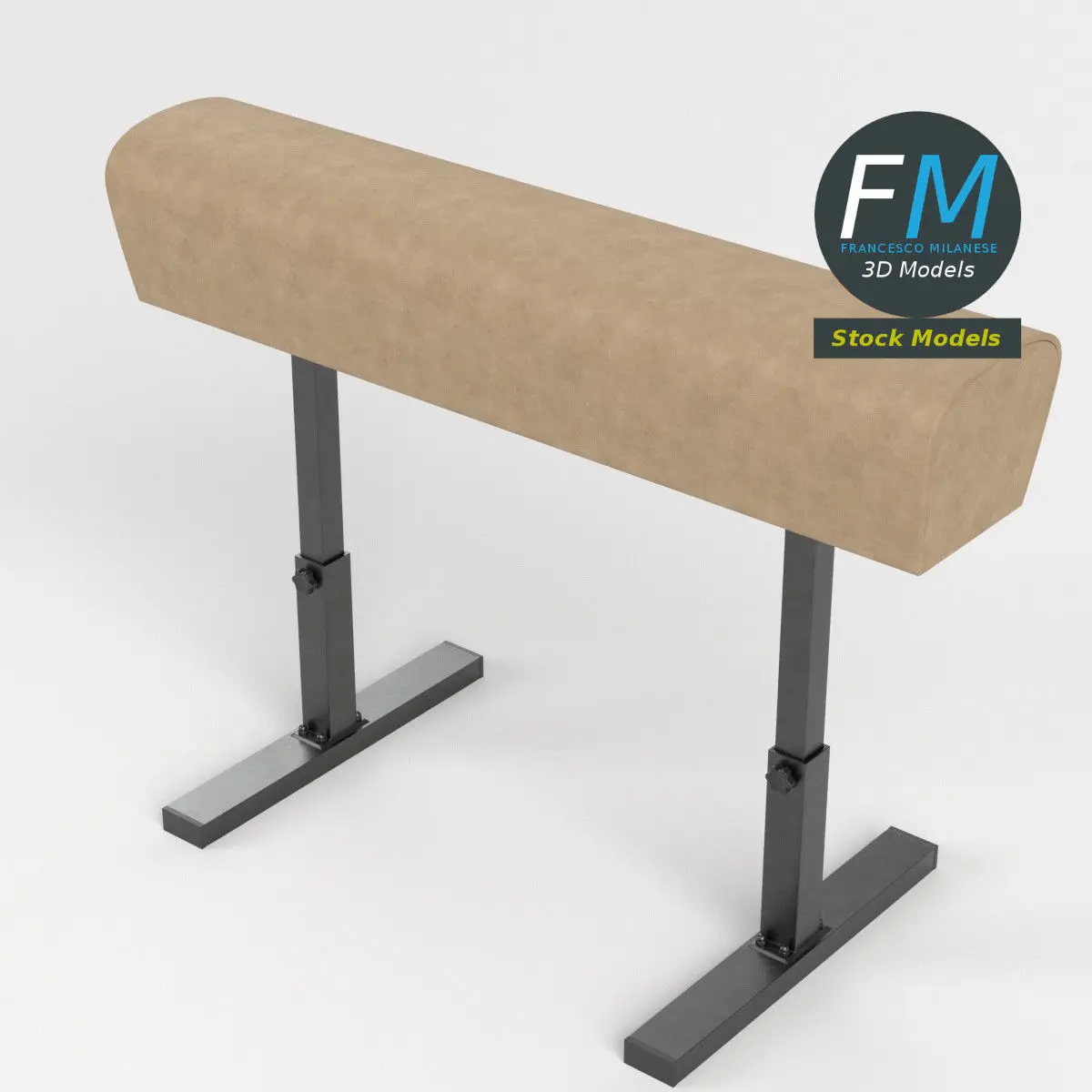 Vaulting horse (no pommels version) gymnastics equipment 3D Model. 2 individual objects (base, top), sharing the same non overlapping UV Layout map, Material and PBR Textures set. Production-ready 3D Model, with PBR materials, textures, non overlapping UV Layout map provided in the package.Quads only geometries (no tris/ngons).Easily customizable: UV unwrapped geometries, so you can create new Textures (or modify the existing ones) using the UV Layout maps provided in the package (as png with alpha).Each Object, Material or Texture provided in the package has a unique, meaningful name.Made in Blender 3.1 with a Cycles PBR shader with textures included (principled and Eevee compatible), then exported to OBJ and FBX; materials and textures made in Substance Painter, exported for PBR, V-Ray, Unity, Unreal.PROMO IMAGES: the first image has been rendered in Cycles for Blender; in particular, you can find 11+ promo images in this description: