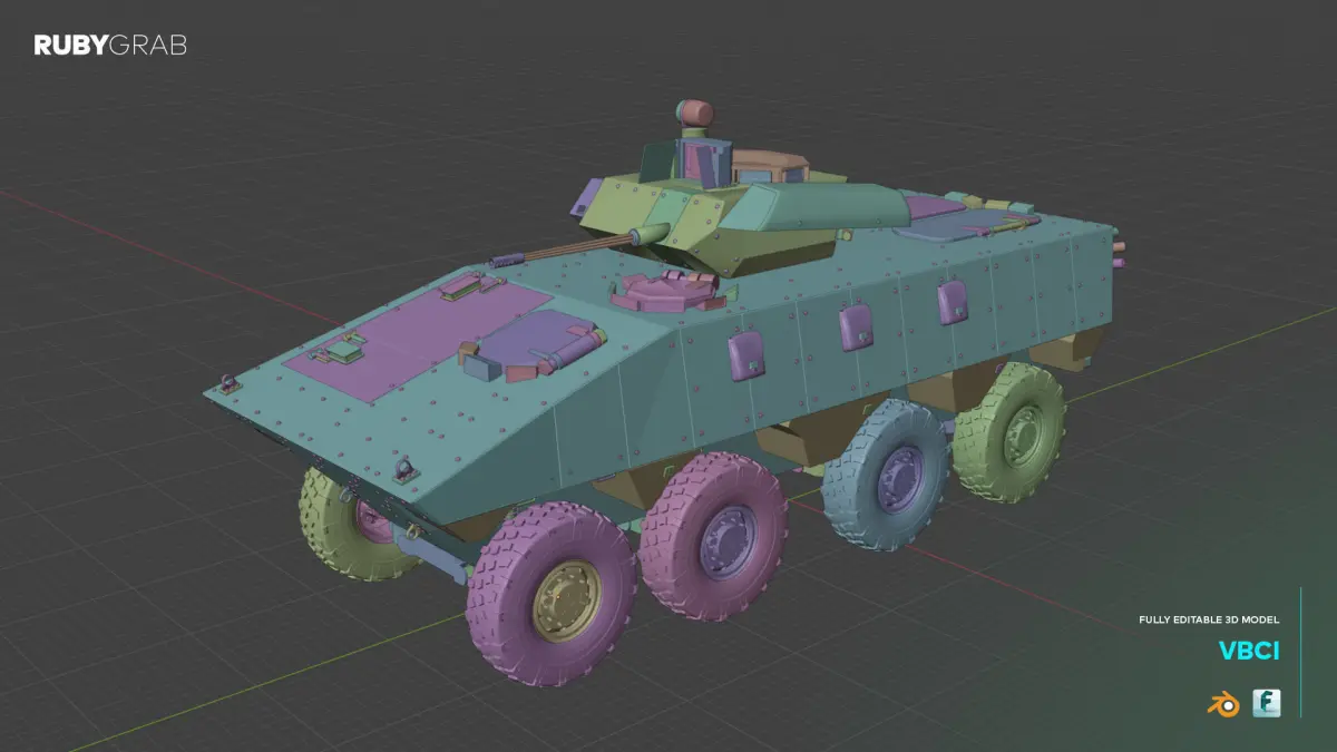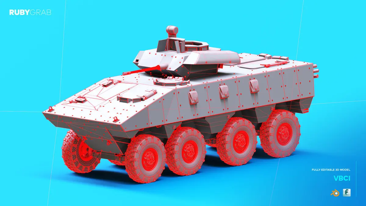 The VBCI is a highly detailed 3D model of the French 8x8 armored infantry fighting vehicle, designed to meet the demands of modern combat. The model features precise geometry, modular components, and a turret equipped with a 25-40 mm autocannon, showcasing its exceptional design and functionality. This package includes fully editable .blend files for Blender users, as well as optimized .fbx files for seamless integration into other 3D software and game engines. Perfect for rendering, animation, or game development projects!