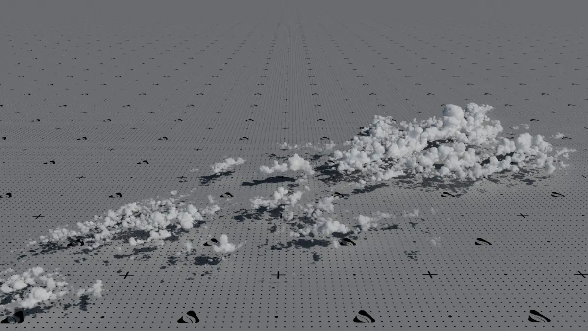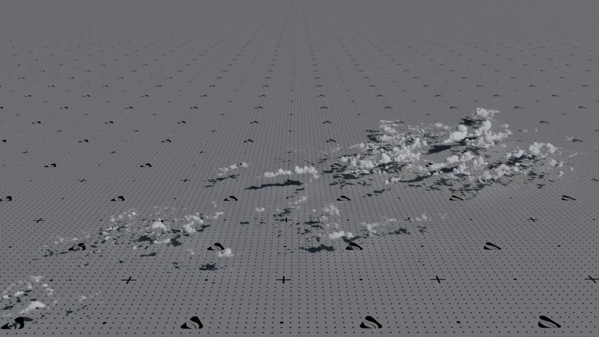 Due to our satellite data-based cloud field simulations, we are able to create much more realistic large-scale, multi-cloud formations, which outperform traditional cloud VDBs in scenes like: