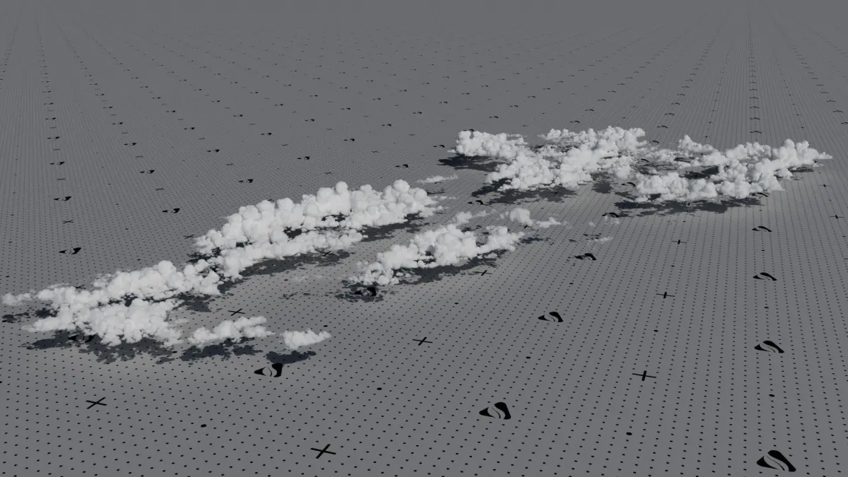 Due to our satellite data-based cloud field simulations, we are able to create much more realistic large-scale, multi-cloud formations, which outperform traditional cloud VDBs in scenes like: