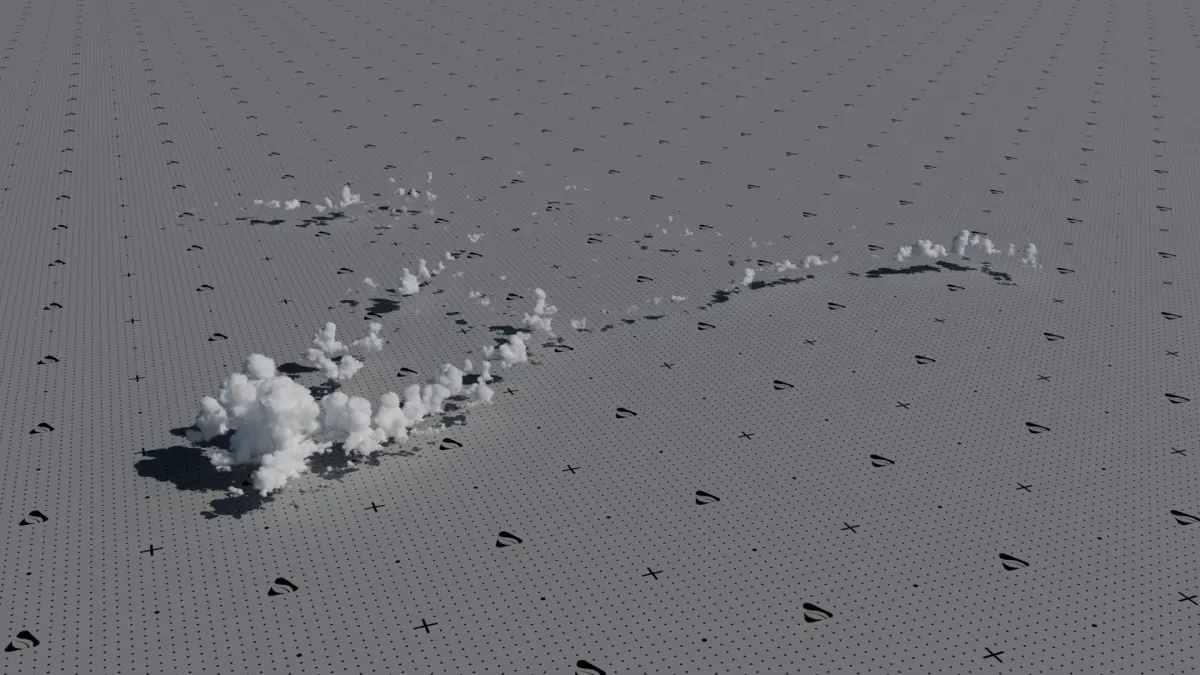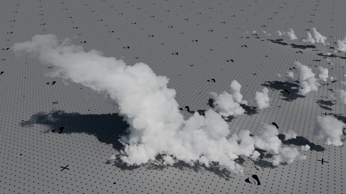 Due to our satellite data-based cloud field simulations, we are able to create much more realistic large-scale, multi-cloud formations, which outperform traditional cloud VDBs in scenes like: