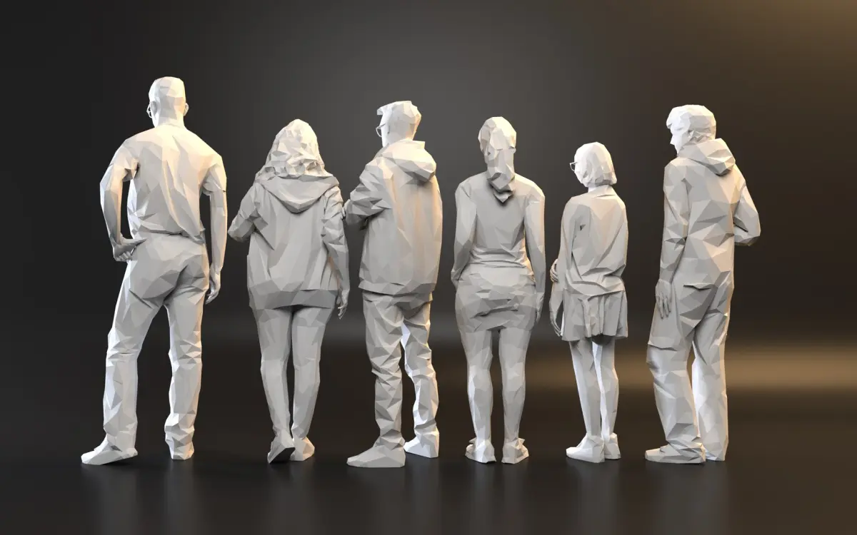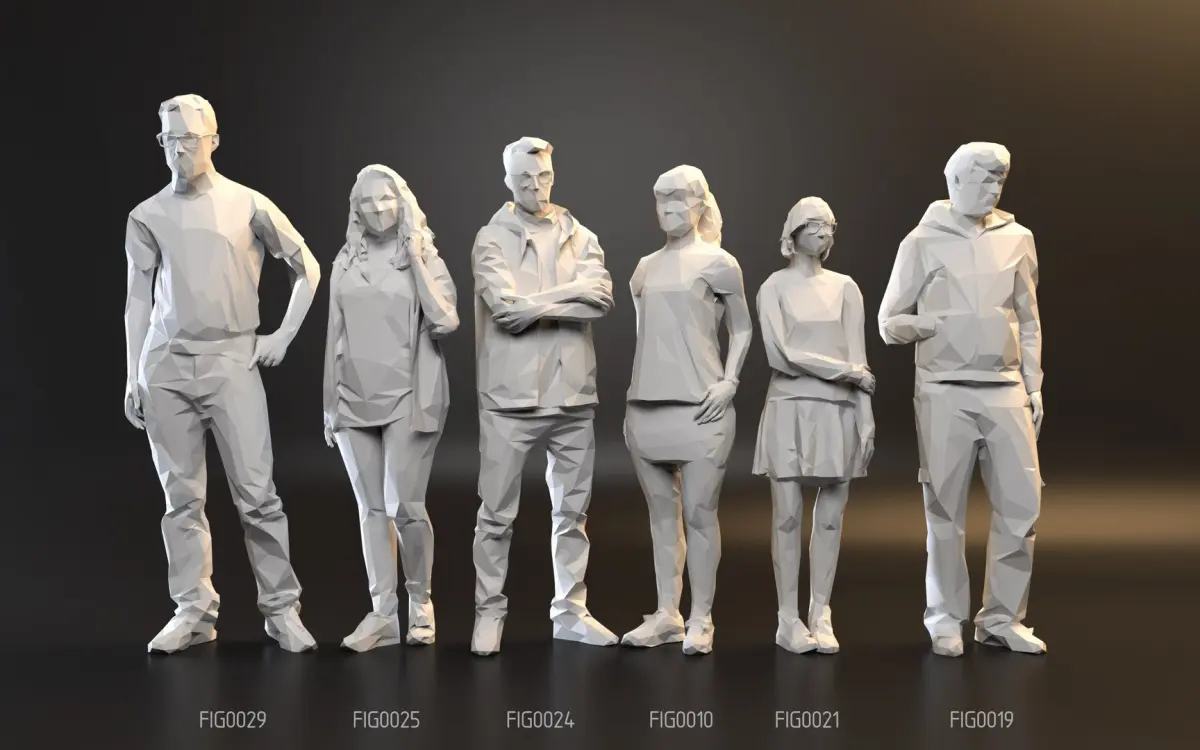a pack of six different figures in a polygonal style. - each figure has approximately 3500 faces.