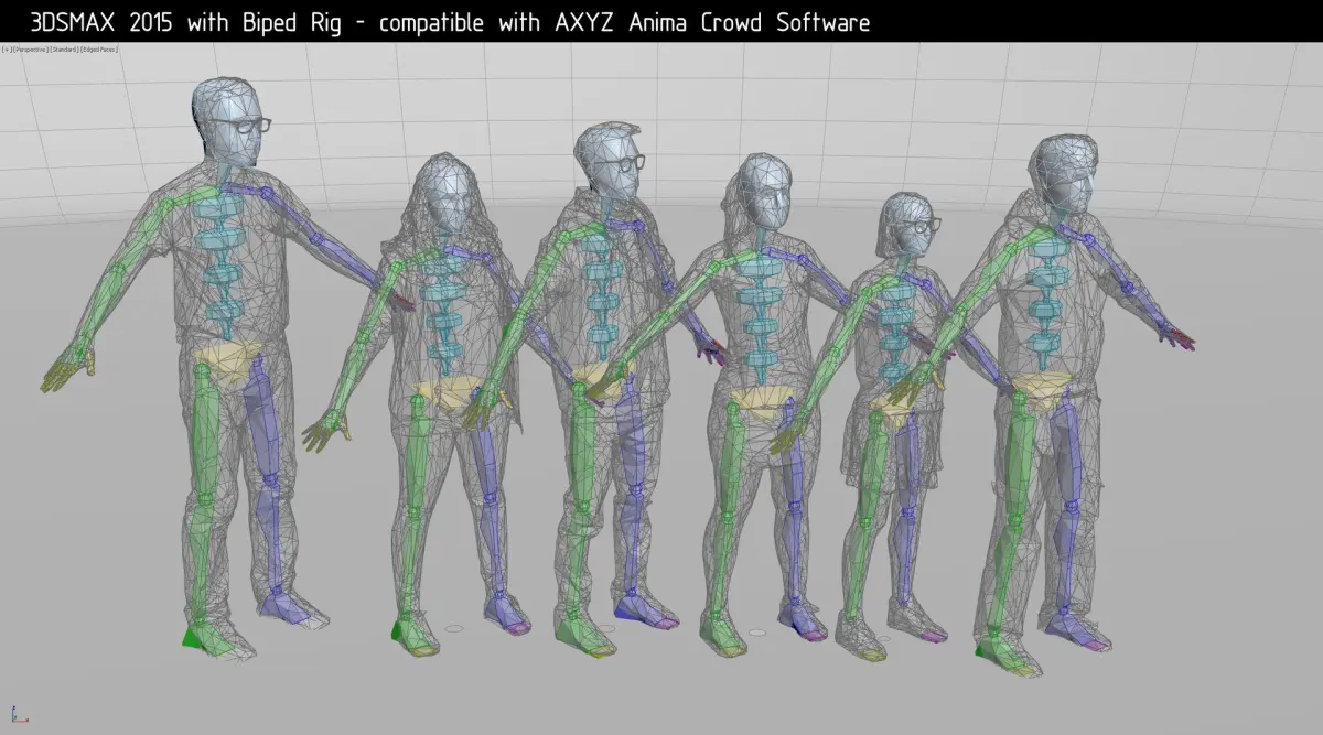 3ds MAX File with Character Studio Biped, which is made to the specs of AXYZ Anima Crowd Software.