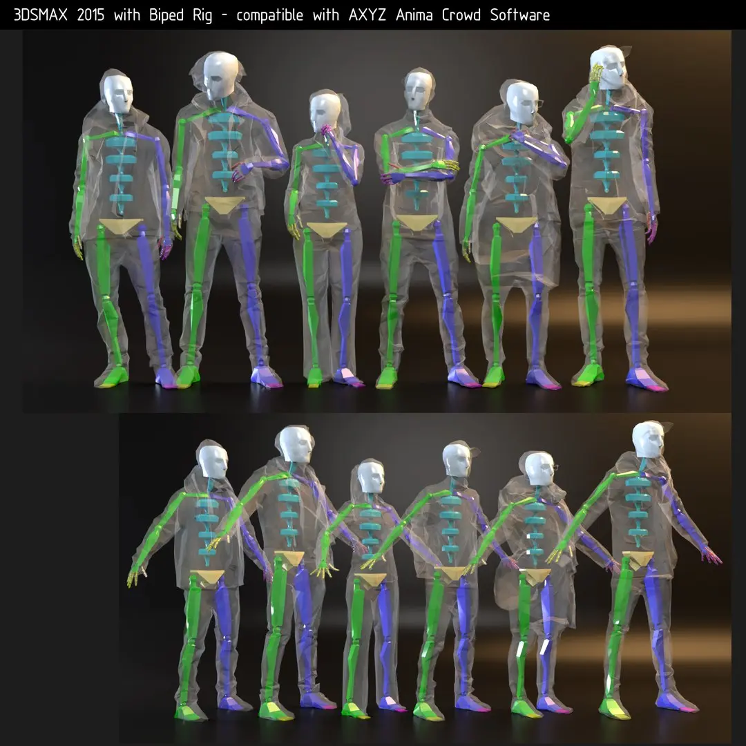 - Bipeds are compatible with AXYZ Anima Crowd Software