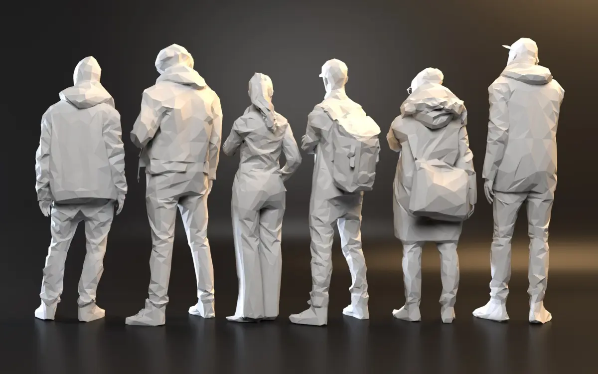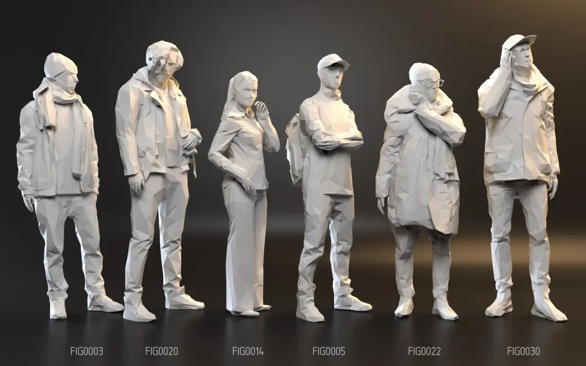 a pack of six different figures in a polygonal style. - each figure has approximately 3500 faces.