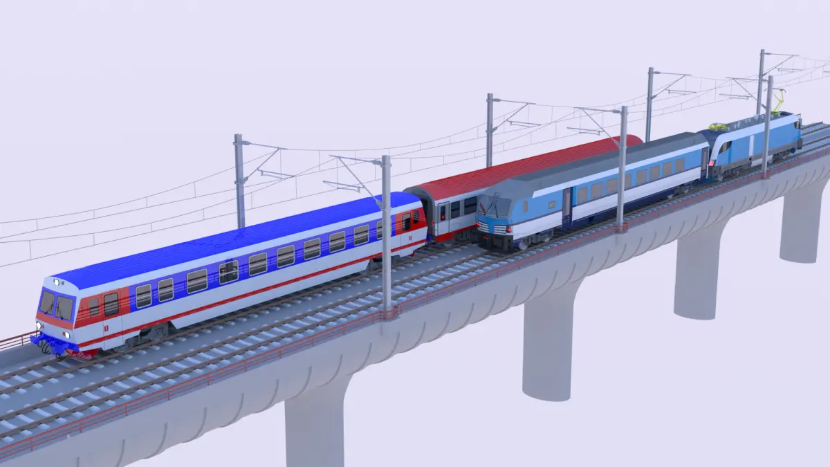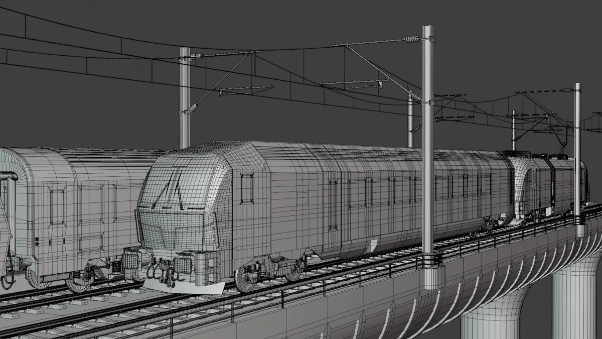 - This is 3D model of bridge with Siemens Vectrain and diesel train of type 5047 with wagon of type Bmz.