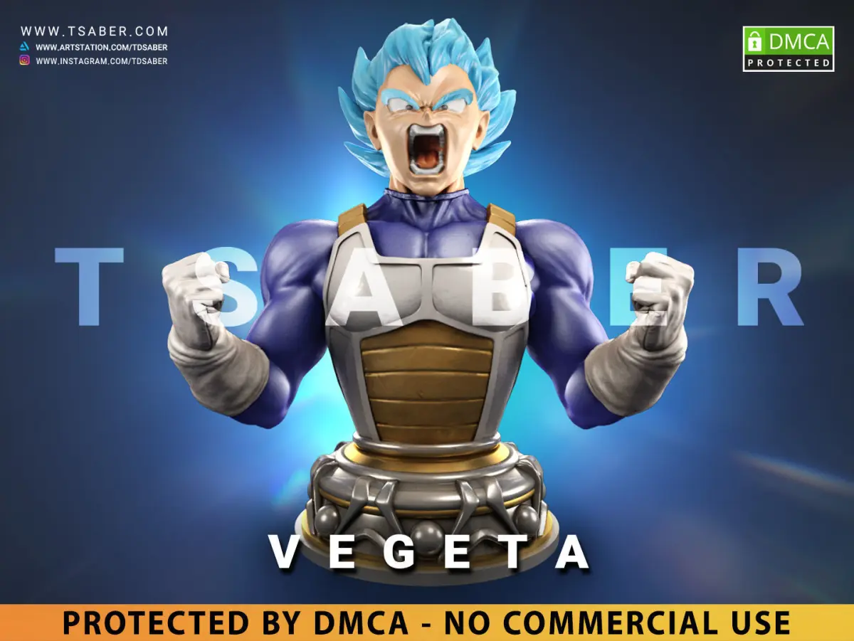 Vegeta is available in Obj, Stl and Ztl formats. Vegeta bust is specifically made for 3d print purposes, well of course you can use my Vegeta bust in any other way that you wish.