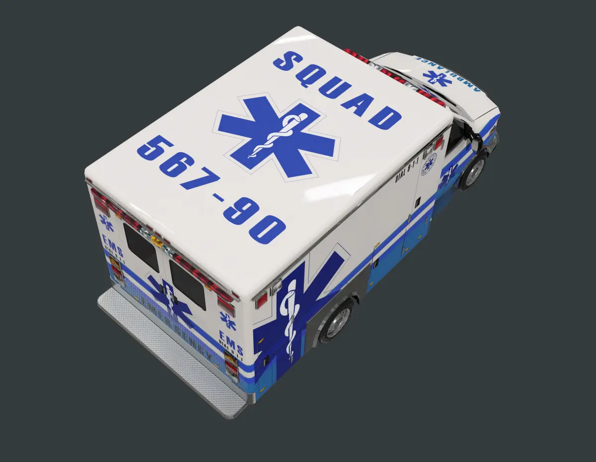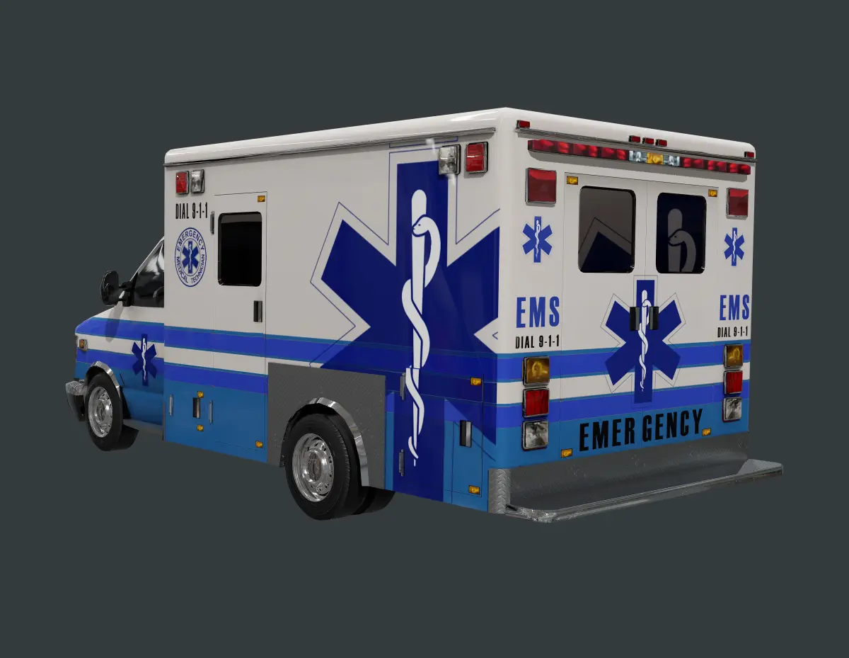 Model of an ambulance, unwrapped with PBR textures. OBJ files and FBX files. Ready for use in any 3D software or game engine. Unwrapped: Non- Overlapping.
