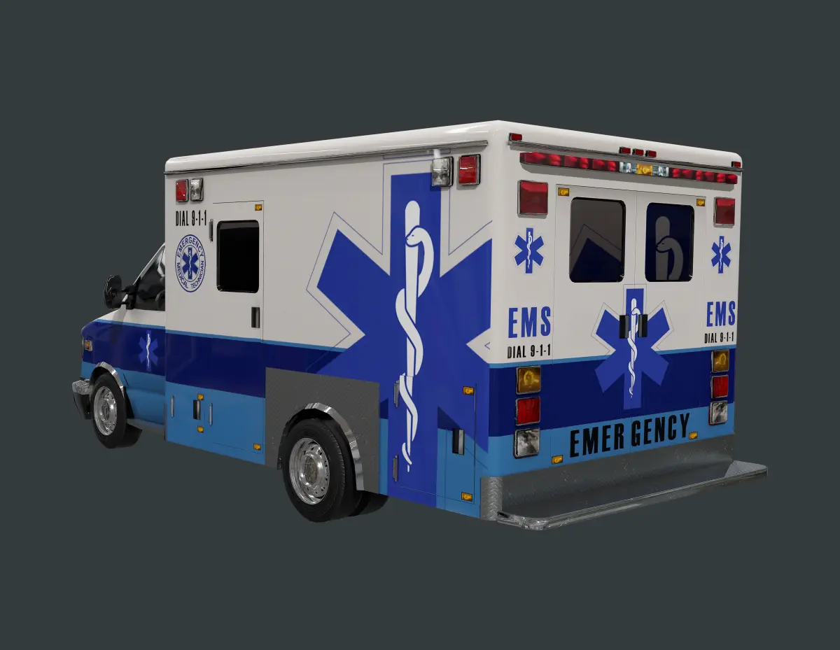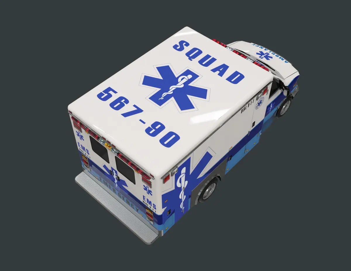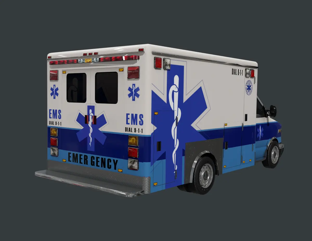 Model of an ambulance, unwrapped with PBR textures. OBJ files and FBX files. Ready for use in any 3D software or game engine. Unwrapped: Non- Overlapping.