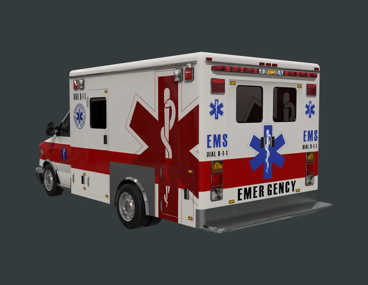 Model of an ambulance, unwrapped with PBR textures. OBJ files and FBX files. Ready for use in any 3D software or game engine. Unwrapped: Non- Overlapping.