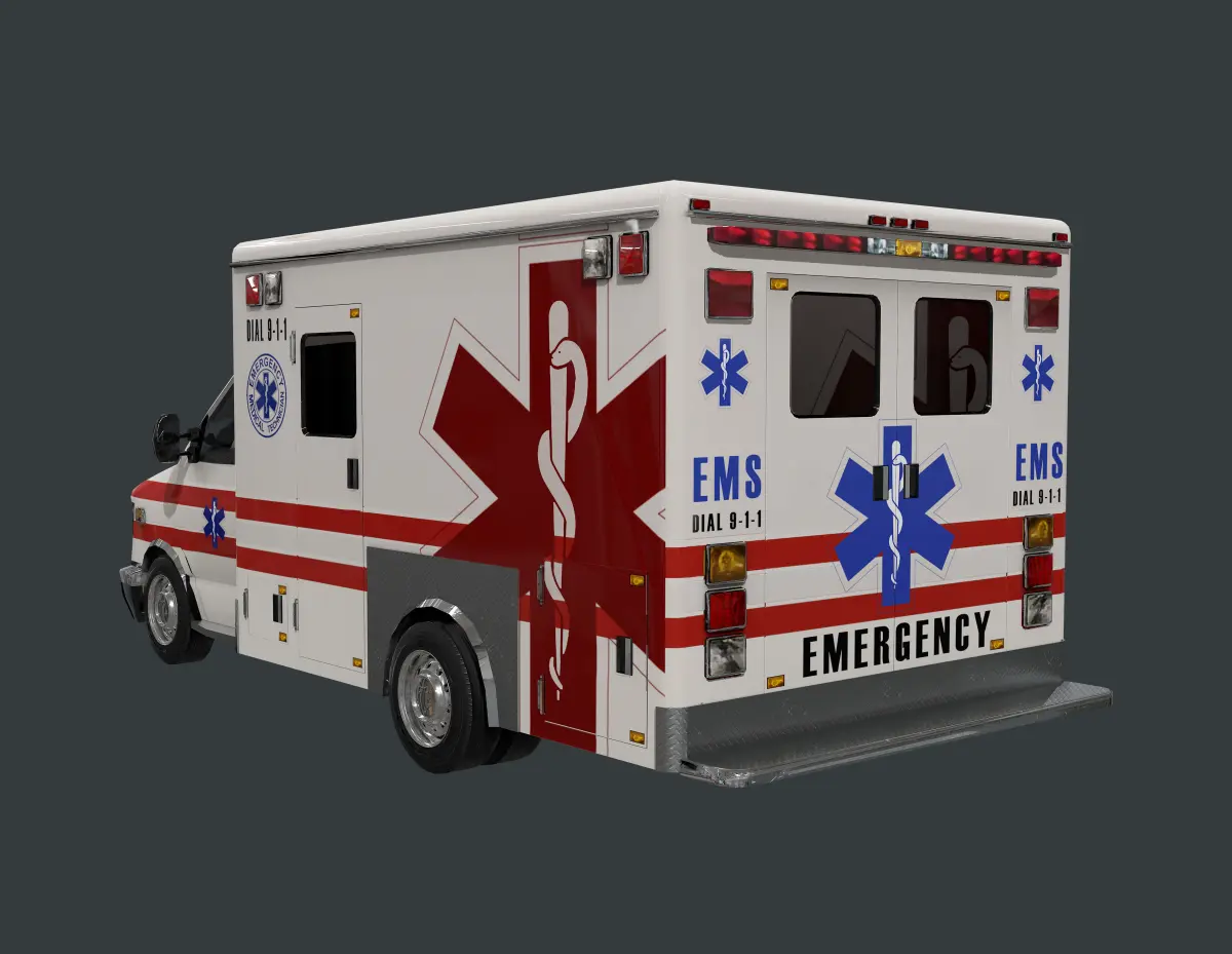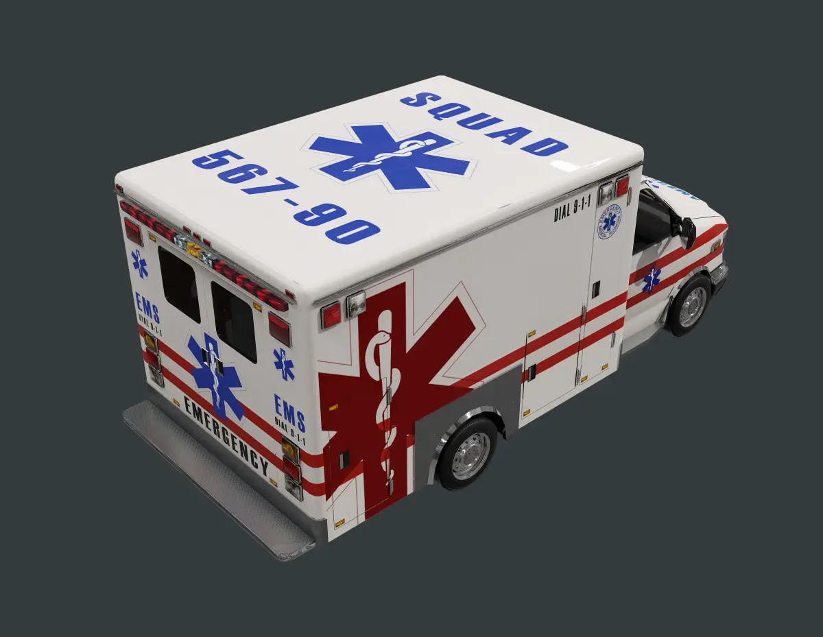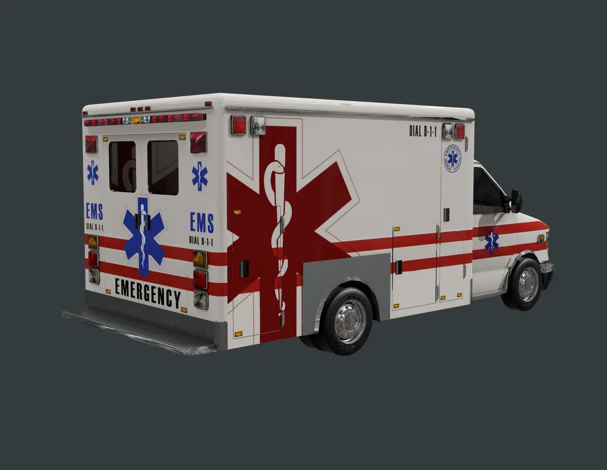Model of an ambulance, unwrapped with PBR textures. OBJ files and FBX files. Ready for use in any 3D software or game engine. Unwrapped: Non- Overlapping.