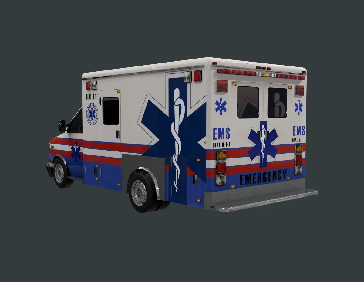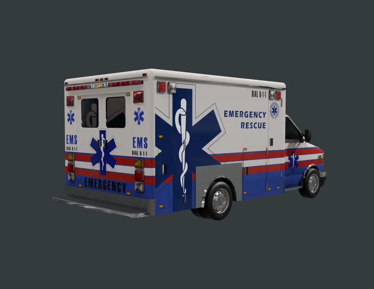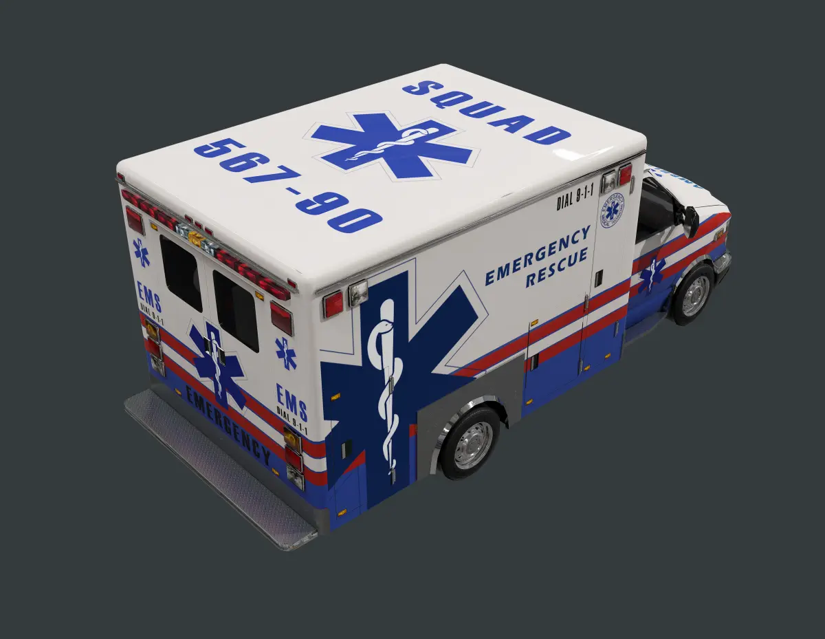 Model of an ambulance, unwrapped with PBR textures. OBJ files and FBX files. Ready for use in any 3D software or game engine. Unwrapped: Non- Overlapping.