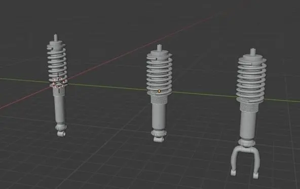 This is a low poly 3d model of two types of vehicle coil spring plus dumper/shock absorber setup.