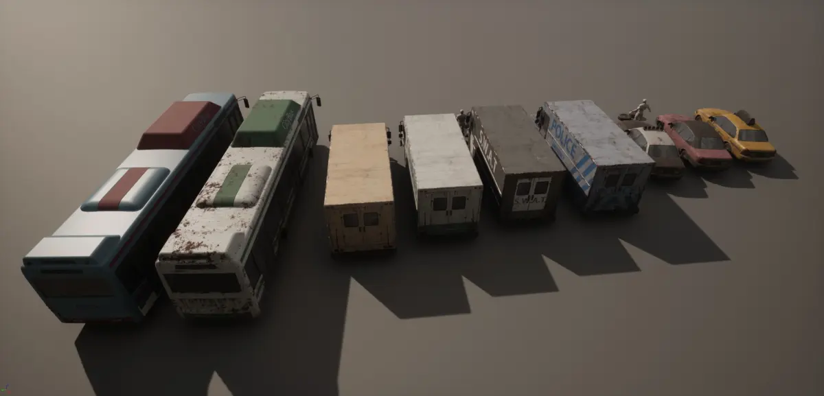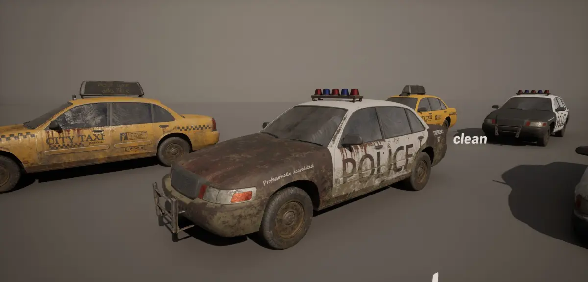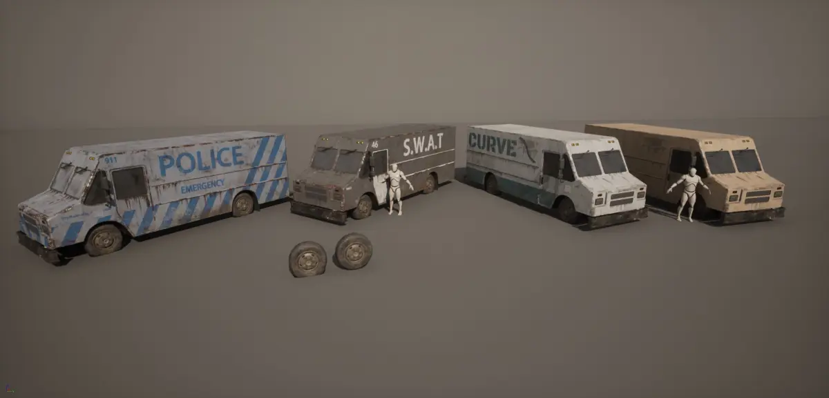 -FBX, Maya, blender files-Textures and masks ( 2 k resolutions)-Unreal engine project with all necesarry materials and intances. It has a flexible system , you can change everything you want ( colors, prints, rust intensity, damage and so on) -No collisions, no lods, works with Nanite and Lumen