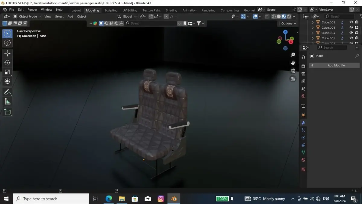 The seat was very quality and give the shading and textures .It will be using vehicle and the model is luxury seats