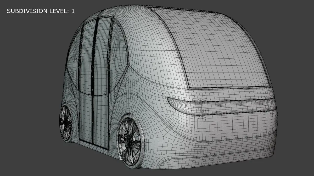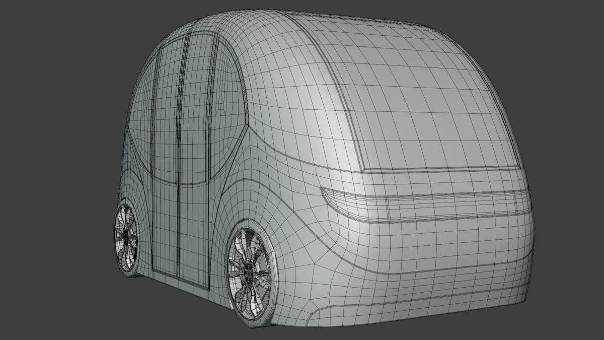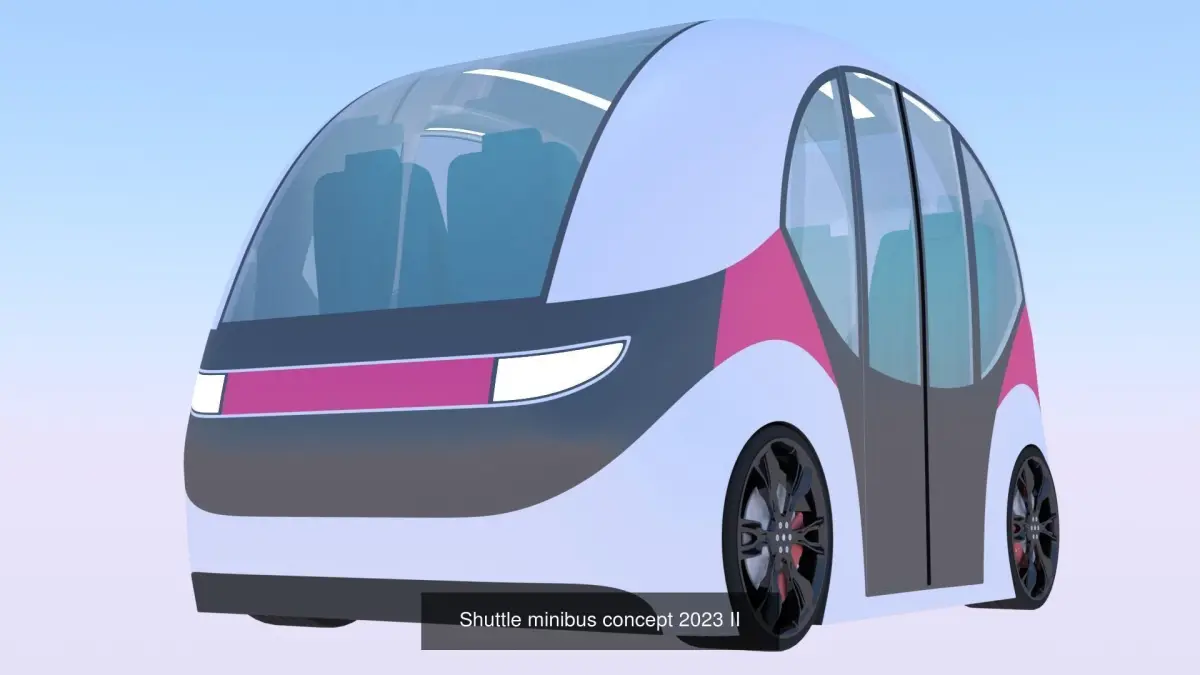 These are 3D models of delivery van, passenger drone and shuttle minibuses.