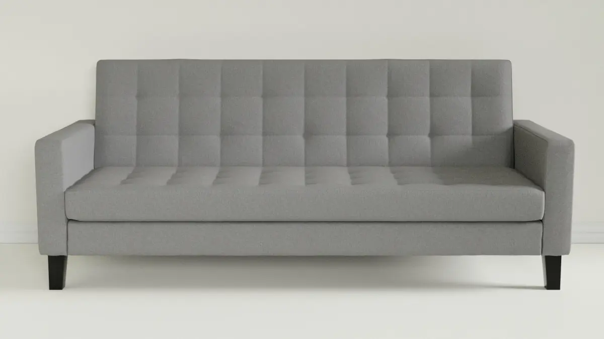 This tufted sofa offers not only a seat for up to three, but with the adjustable back and an easy-to-use mechanism it turns into a comfortable bed for an occasional sleepover. The contemporarily styled straight-lined form, with track arms and solid legs, brings a versatile look that easily suits any interior decor, from minimalist through Scandinavian to even glam.
