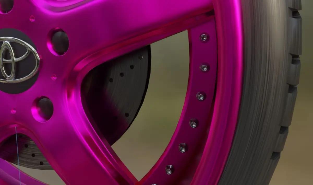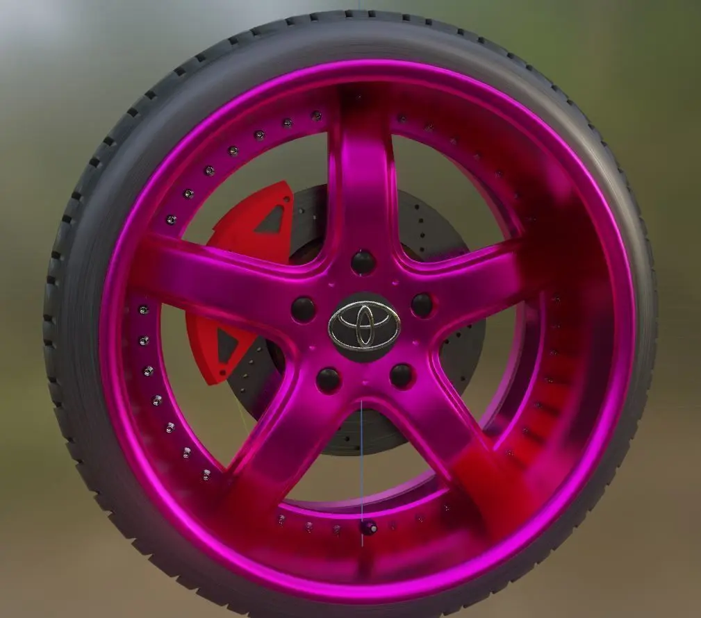 VeilSide Pink Metal Wheels with Red Brake Calipers Game ReadyThis exact model comes with Toyota logo on it (you can dm me if you want another one)