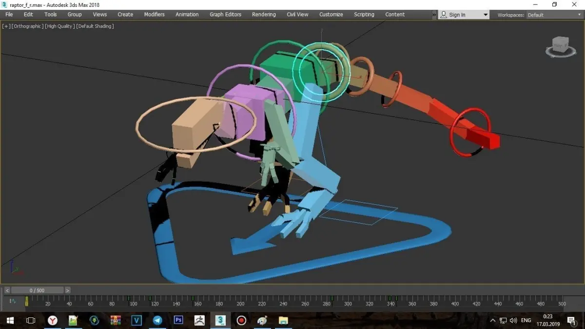 This model of velociraptorcreated in 3ds max. It has a skeleton to make some animation.It is ready to use.Model has 2 textures.The first is for body(diffuse map) and the second is for eyes.Both textures included in textures.zipSkeleton is created by CAT systemAlso bones have gizmo's, permitting to control movements of dinosaur conviniently.So I hope, you'll like it.File has .max format