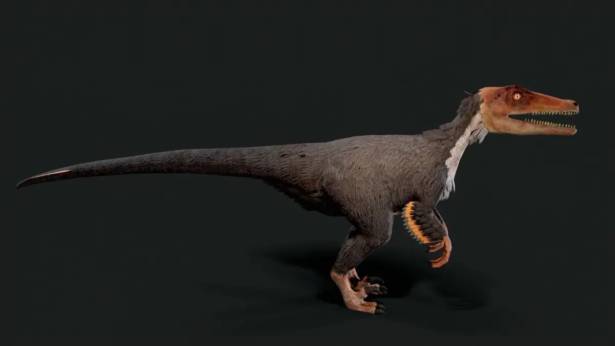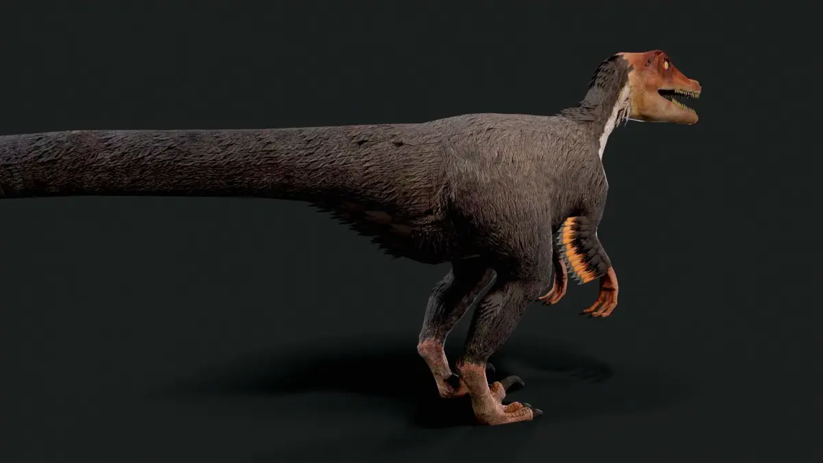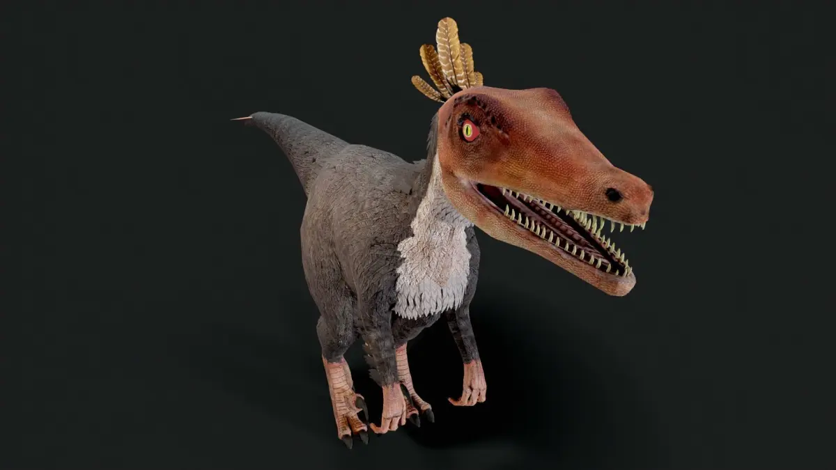 Velociraptor Dinosaur, fully rigged and animated with optimized low poly count and clean topology. Ideal for seamless integration into games and AR/VR applications, this model is scaled to real-world dimensions.