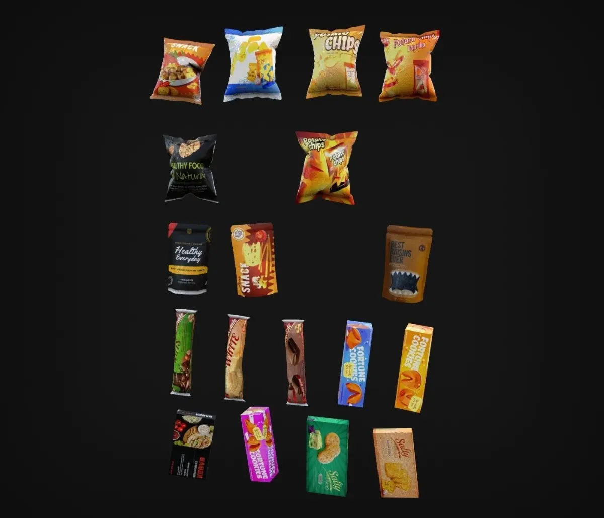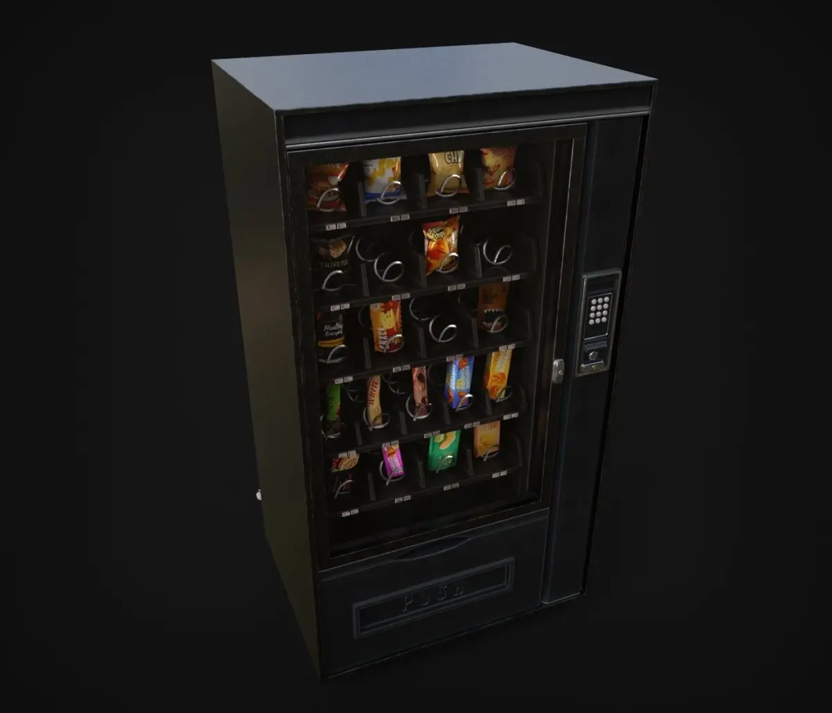 UVs and texture setsseparate UVs for Machine, Glass and Snacks4k texture set for the machine