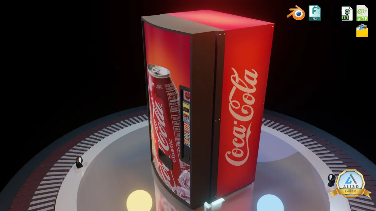 Vending Machine Low Poly Game Ready Complete Download Package Includes: -Blend File -FBX -OBJ -STL -GLB -PLY -Textures (Color, Normal, Roughness & More)