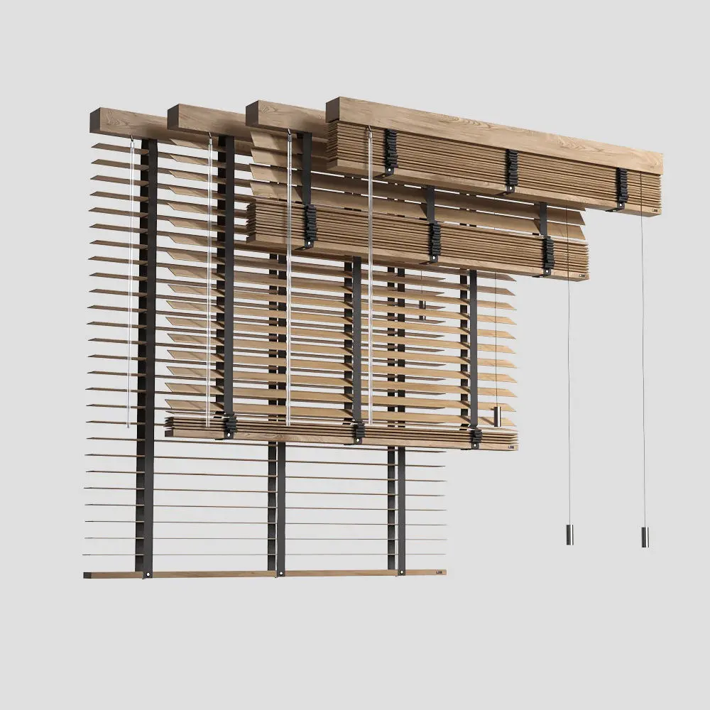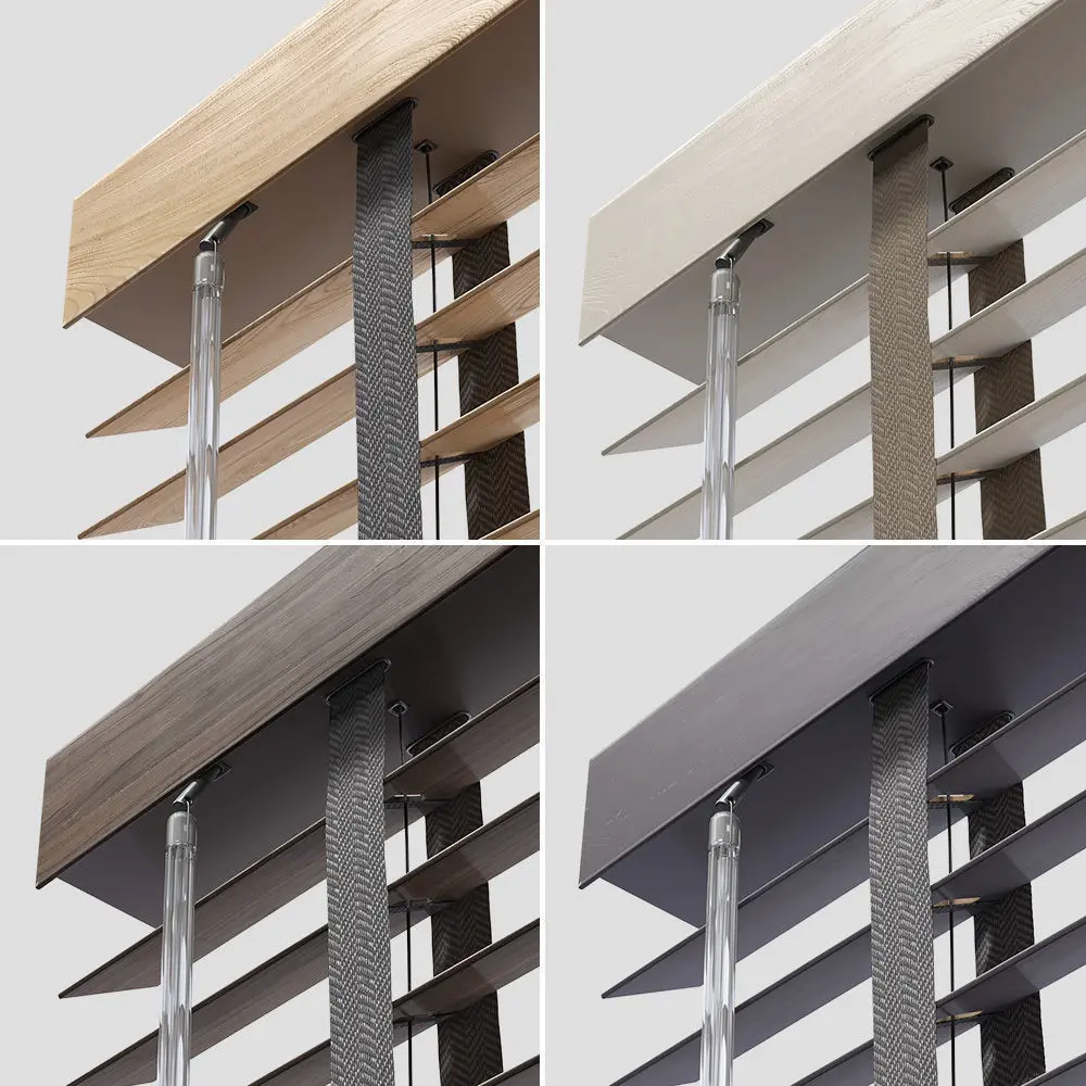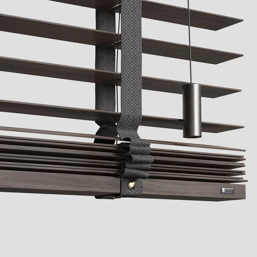 Wood Venetian blinds collection includes 10 configurations in 4 colors. Standard length - 1150 mm, but easily adjustable.Cloth tape ladders 25 mm available in 2 colors.Blinds equipped with clear plastic tilt wand.