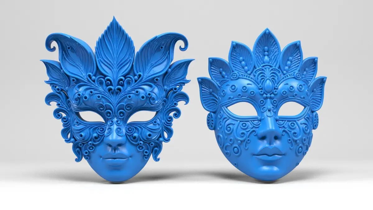 These Venetian Masks are intricately designed to evoke the elegance and mystery typical of traditional Venetian carnival masks. The ornate detail work enhances their luxurious and exotic appeal.