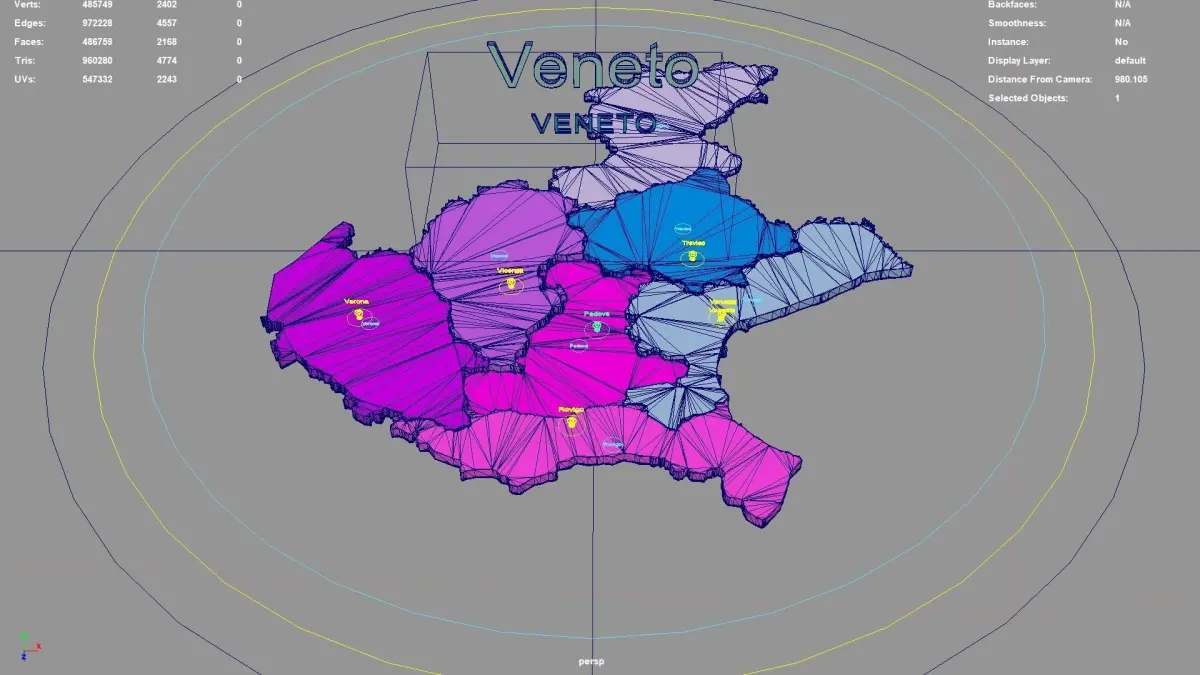 Veneto regions : The model is divided according to the administrative region of Veneto. Each region is clearly separated so you can easily isolate it or change the colors. Names are also editable and separate.